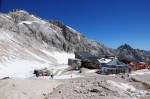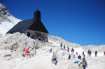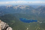 Ajungem in gara de pe platoul Zugspitze – Zugspitzplatt, dupa care ne indreptam catre telecabina. Nu ne urcam in telecabina care ne va duce pe varful Zugspitze (2964 metri) pana nu degustam o bere rece sau pana nu facem cateva fotografii cu familia, aici, pe platou. Apoi, dupa 5 minutzele cu telecabina, suntem pe cel mai inalt varf al Germaniei. Aici, parca suntem pe o statie lunara. Cu restaurante, cu magazine de suveniruri, un mic muzeu, cu de toate. Nu mai spun ca putem trece granita, chiar pe varf, si in Austria. Totul este pus la dispozitie pentru distractia turistului. Dupa vreo doua ceasuri si cateva beri, wursti sau strudele de mere, dupa ce am admirat, fotografiat si filmat indeajuns peisajul maestru care ni se arata, va puteti intoarce ori pe unde ati venit, ori cu alta telecabina, pana jos la Eibsee. De acolo, trenul va aduce inapoi in Garmisch. Ce ziceti? Merita banutul? Cu varf si indesat, as zice eu.