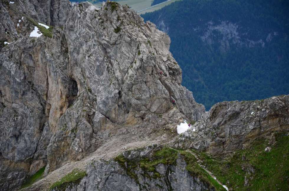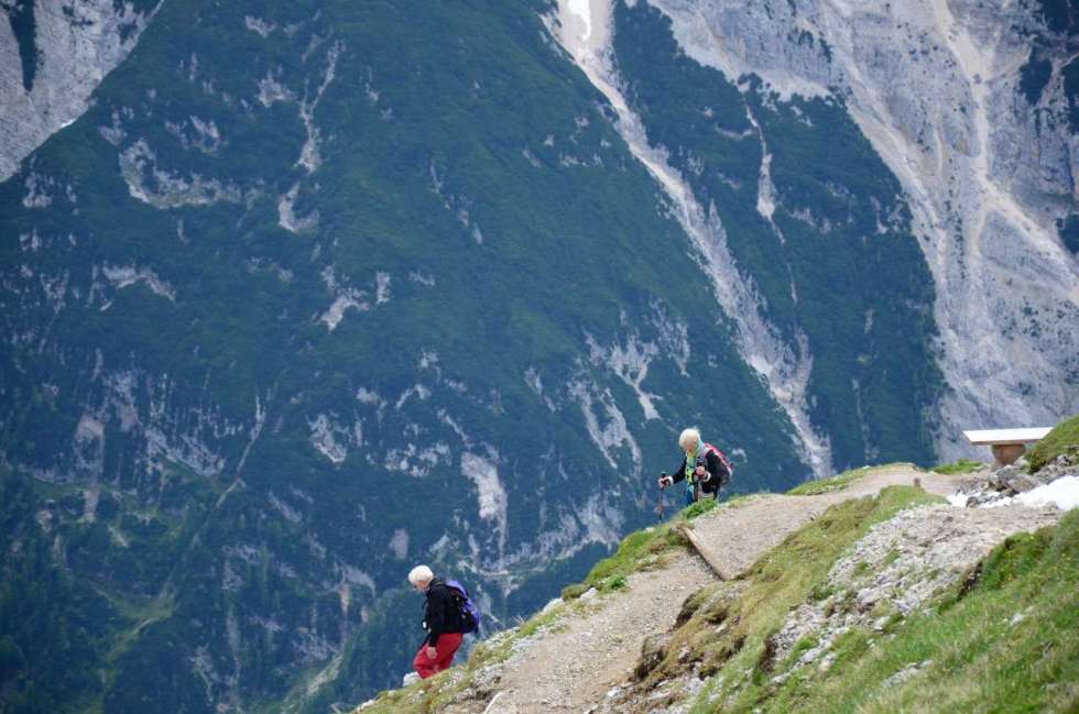 O multime de turisti erau sus pe munte, majoritatea de varsta a treia. Si nu ma mira, pentru ca traseele sunt destul de usoare si accesibile, chiar si pentru batrani. Alpinistii si cei mai cu forta in picioare au la dispozitie si trasee mai dificile. De exemplu, pentru coborarea in Mittenwald am vazut doua trasee, unul de 3-4 ore si altul