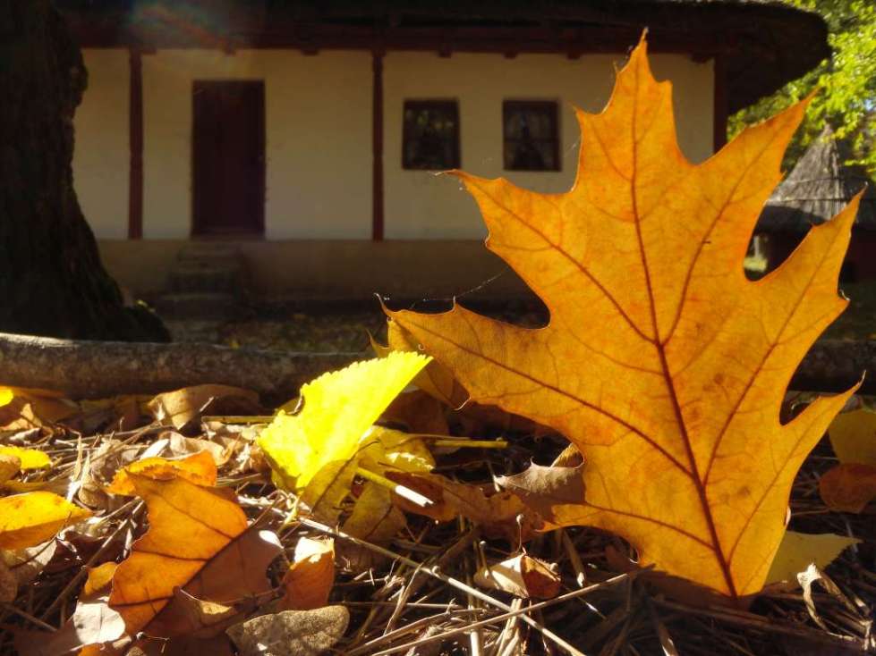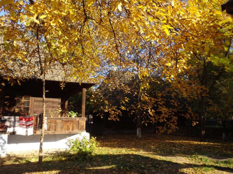 Frumoasa zi de toamna azi in Muzeul Satului din Bucuresti, in satul de la oras (cum am mai auzit ca i se spune). Nu stiu de ce, dar cel mai mult imi place sa ma plimb toamna pe aleile sale… Si sa ratacesc printre casele batranesti cand copacilor le ingalbenesc frunzele… Daca si soarele isi trimite razele jucause printre ramurile copacilor, atunci nu poate fi decat o zi perfecta. Cum a fost azi…