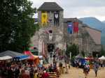 După ce am plătit biletele de intrare, 20 de Euro de familie, am pornit către Castel. În fața acestuia erau amenajate tarabe cu suveniruri, arme, obiecte decorative și haine medievale, terase la care puteai să mănânci sau să bei bere, băncuțe pentru vizionarea spectacolelor sau demonstrațiilor de luptă.