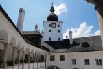 Într-una dintre zile am vrut să vedem și Castelul Ort, din orașul austriac Gmunden. Castelul este așezat pe lacul Traunsee iar la el se poate ajunge numai mergând pe un pod cu o lungime de 130 de metri. Sau cu barca.