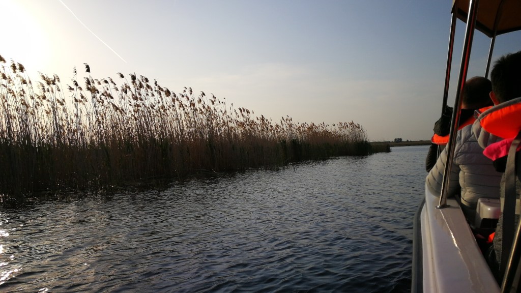 Am fost norocoși să prindem ultima tură cu vaporașul prin Deltă, pentru că la ora 19.00 încetează toate activitățile de acolo. Așa că ne-am bucurat pentru 30 de minute de frumoasa Deltă a Neajlovului la apus.
