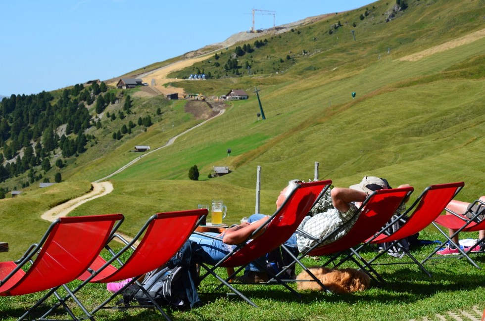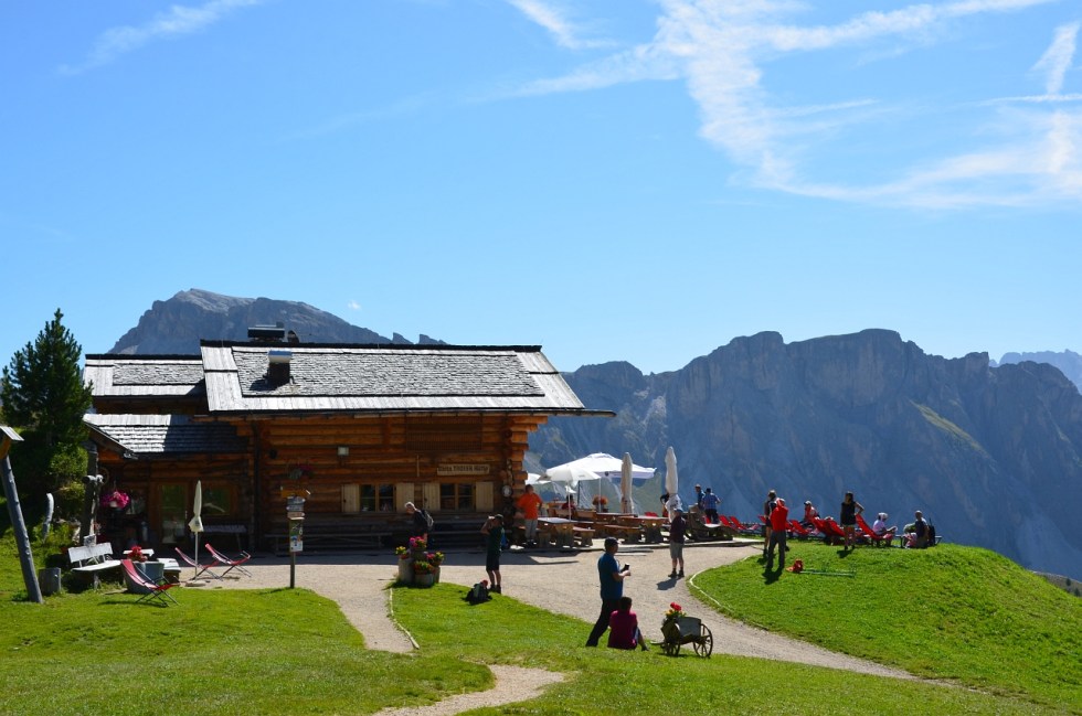 O zi senină, încă de dimineață. Așa că am mers până în Santa Cristina și am luat gondola către Col Raiser (2107m). Pentru toți trei (mamă, tată și copil), dus-întors, a costat 51 de Euro. Iar parcarea mașinii 3.5 Euro/zi.