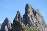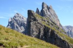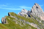 După 40 de minute eram la Forcella Pana (2500m), unde am dat de unul dintre cele mai spectaculoase peisaje ale Dolomiților. De o parte pajiște, de alta hău, prăpăstii, pietre și stânci. Cu Vârful Sas Rigais de 3025m dominând întreaga panoramă.