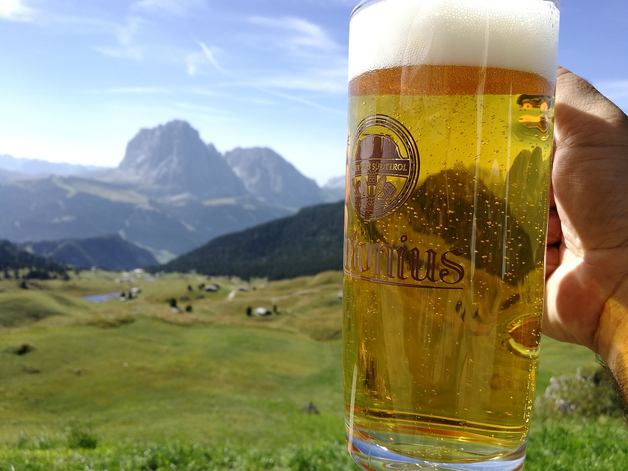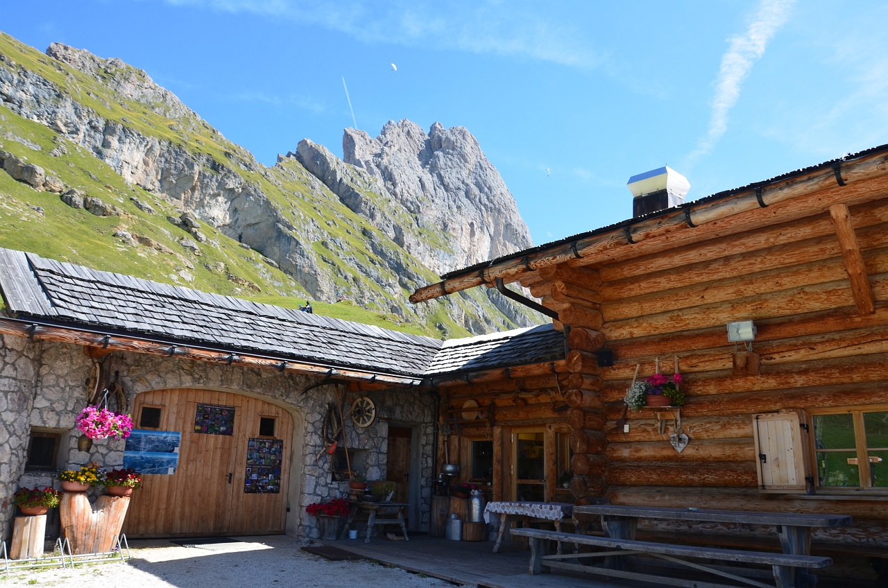 După vreo oră de mers, trebuia să ne odihnim. Prima oprire la 2250 de metri, la cabana Baita Troier. Unde am dat gata o bere gustoasă și ne-am distrat cu un popândău care alerga printre mese. După 20 de minute am purces din nou la drum… până la 2500m.