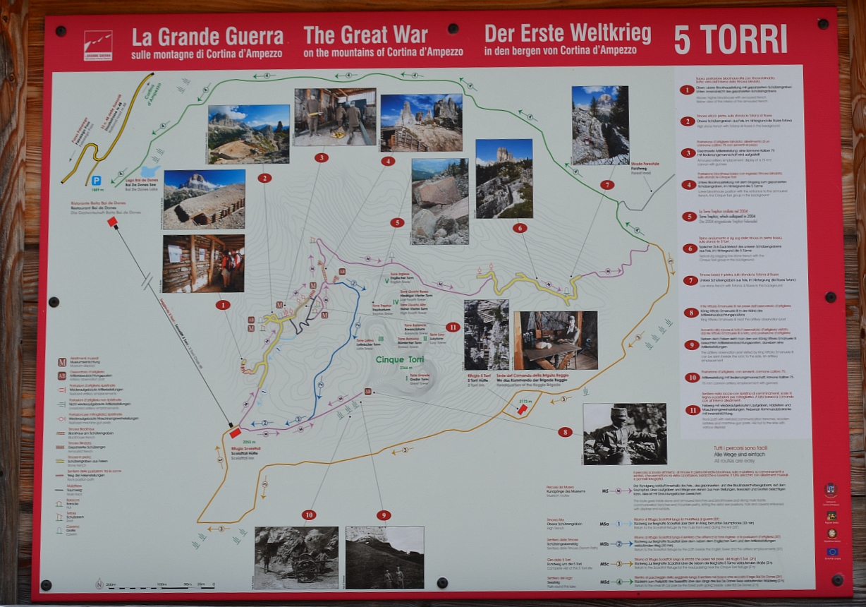 Greu de crezut dar, aici, pe munții de la Cortina D’Ampezzo, pe unde noi ne-am plimbat și am admirat peisaje atât de frumoase și de spectaculoase, s-au purtat lupte grele în timpul acelor vremuri, în care mulți oameni și-au pierdut viețile. Lupte în care artileria a avut rolul principal, pentru că nu prea văd cum se putea ataca la picior pe versanții stâncoși de acolo.