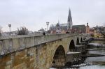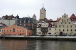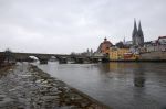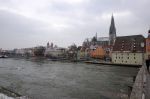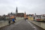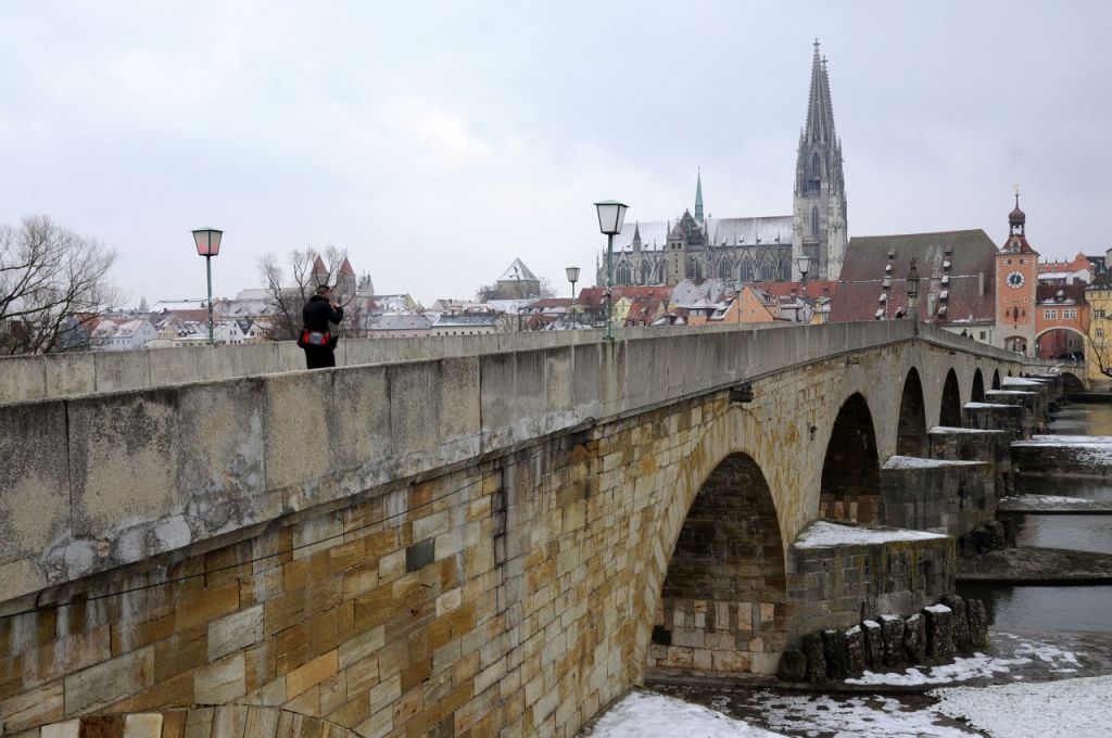 Normal, după ce am tot stat la buza pârtiei vreme de câteva zile, urmărind ce face copilul, ne-am cam plictisit și a trebuit să mergem un pic la plimbare. Și într-una dintre zile am fost prin Regensburg, unde ne-am oprit vreme de câteva zeci de minute la podul de piatră de pe Dunăre. Construit prin secolul 12 (1135-1146) și rămas singurul pod al orașului până prin 1930. Culmea, funcțional și acum, dar numai în regim pietonal.