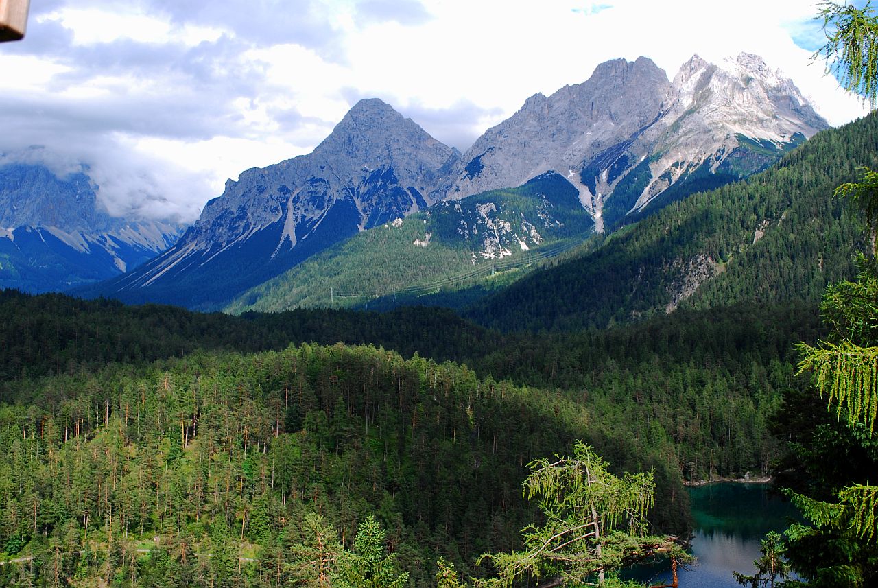 Dacă sunteți cu mașina prin pasul Fern din Tirol/Austria, atunci faceți neapărat o oprire la Zugspitzblick, măcar pentru câteva minute. Este unul dintre locurile în care veți putea vedea o panoramă superbă asupra muntelui Zugspitze și a lacului Blindsee.