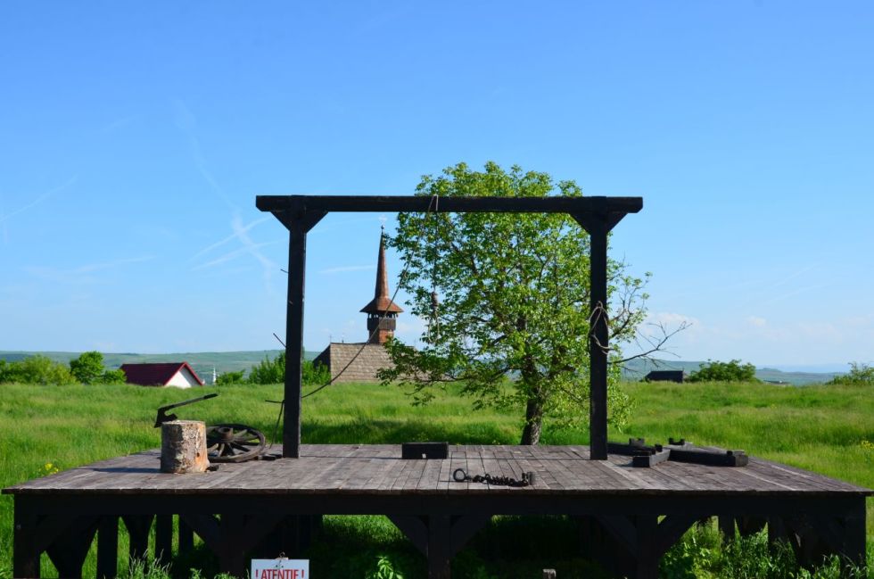 … pentru a ajunge la un eșafod în care sunt expuse instrumente de tortură asemănătoare cu cele folosite la executarea lui Horea, Cloșca și Crișan.