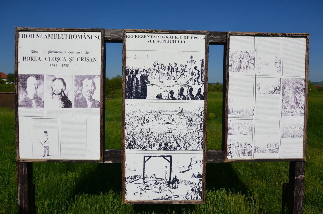 … pentru a ajunge la un eșafod în care sunt expuse instrumente de tortură asemănătoare cu cele folosite la executarea lui Horea, Cloșca și Crișan.