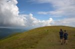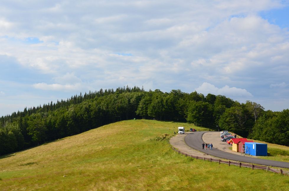 Acolo sus, aproape de La Răscruce, am fost încântați cu peisaje superbe… În zare, către vest, se vedeau munții Tigăile Mari acoperiți de nori, peisajul schimbându-se dramatic la fiecare secundă. Vântul bătea destul de tare, așa că unii dintre noi s-au îmbrăcat imediat cu veste.