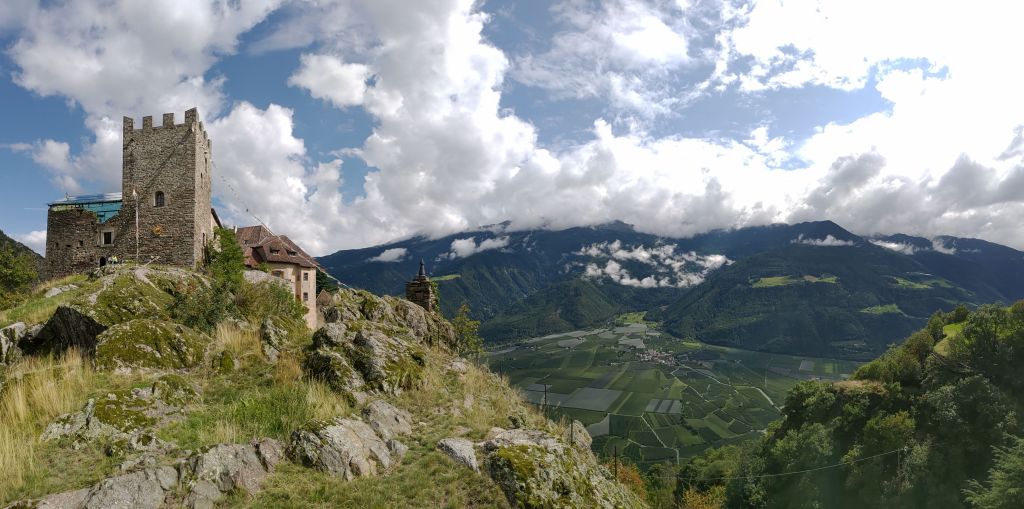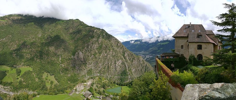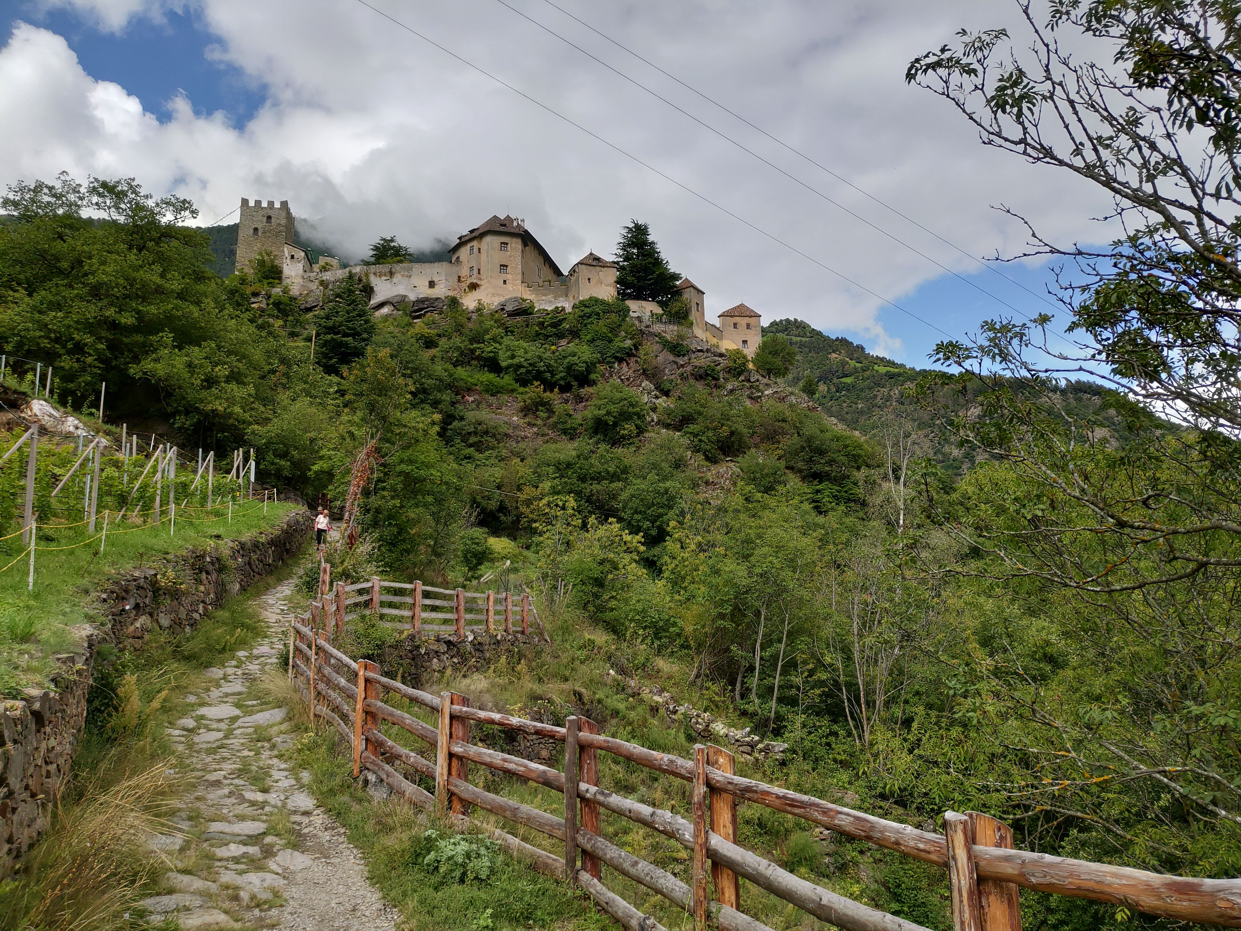 Se anunțase prima zi cu soare după vreo patru ploioase, prima zi când ne bucuram din nou de soare. Plecasem din Nauders cu destinația Castelului Tirolo, când pe șosea mi-a atras atenția reclama de pe un depozit (de mere cred), scria mare – Juval. Mi-am dat seama imediat că trebuie să fie și castelul pe aproape.