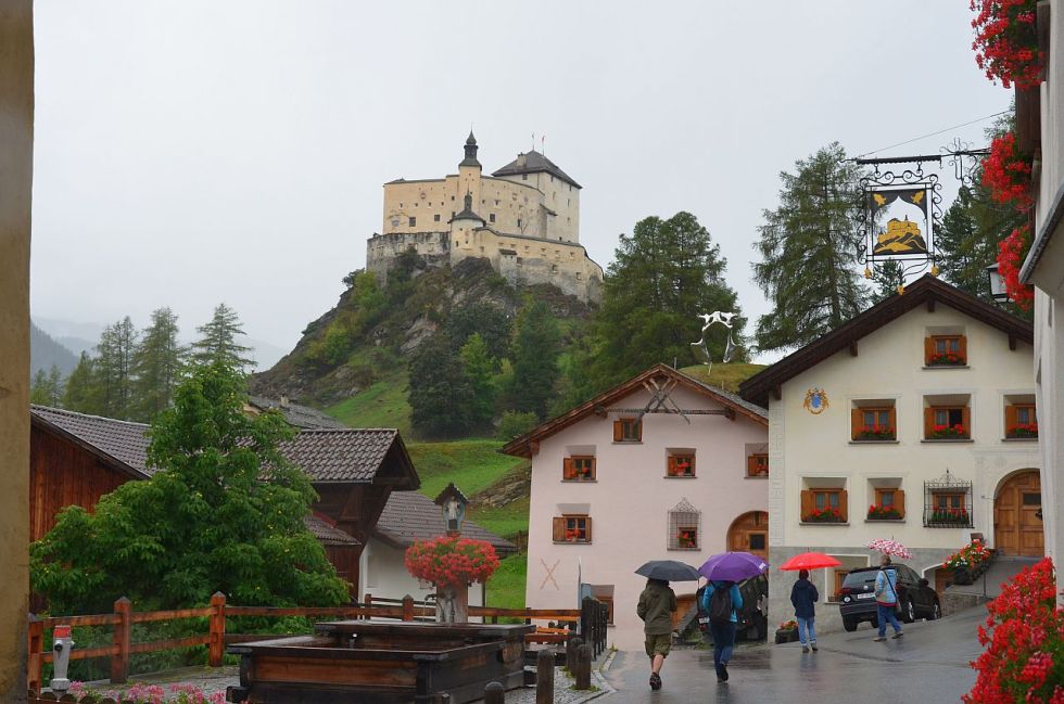 Iar unul dintre castelele vizitate pe vreme ploioasă a fost Tarasp, în Elvetia.