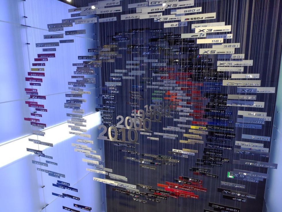 Am intrat, am fost îndrumați să lăsăm rucsacii la garderobă, sub cheie, apoi am mers să cumpărăm biletele – parcă 24 de Euro de familie am dat. Imediat după ce se intră în turul muzeal ești întâmpinat de o sculptură dinamică care ia diverse forme celebre ale mașinilor BMW, după cum puteți vedea în videoclipul de mai jos.