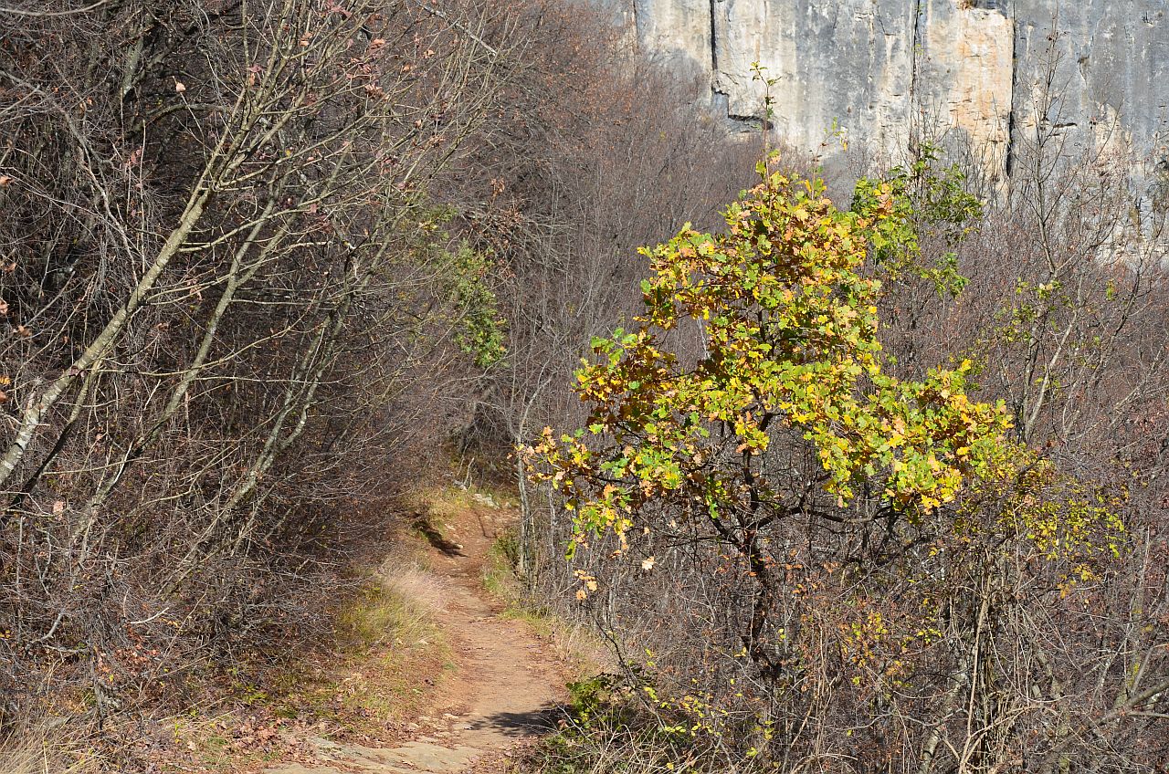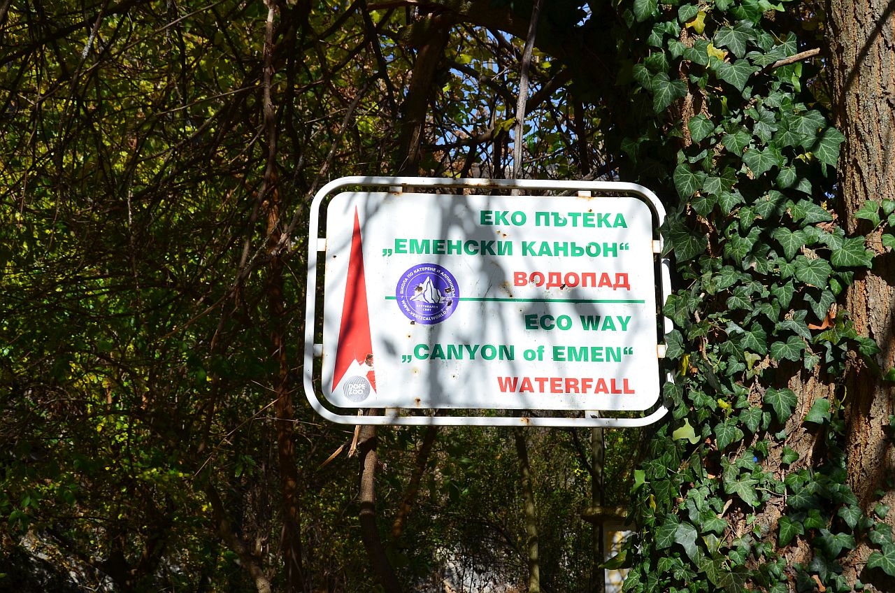 Am văzut un panou cu semne către poteca Eco care parcurge canionul Emen, așa că am luat-o la pas în direcția indicată. Am mers pe o mică uliță a satului, până am ajuns la intersecția cu o potecă… Deși nu exista vreun alt indicator, am luat-o la dreapta, către pădure. Părea drumul logic.