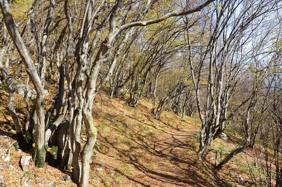 După 20-30 de minute am intrat într-un desiș cu copaci aplecați în bătaia vântului…