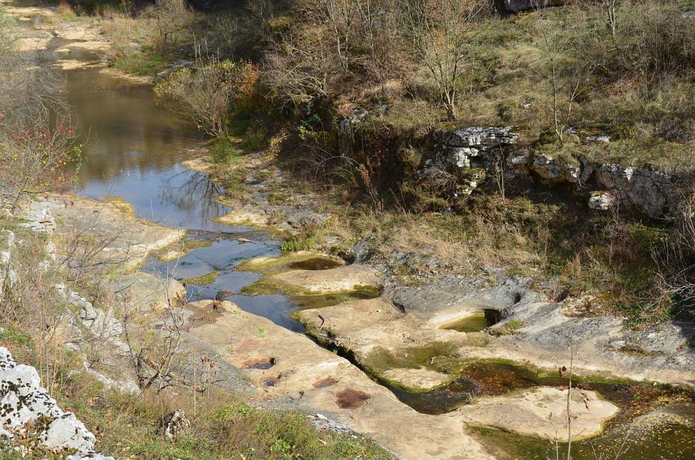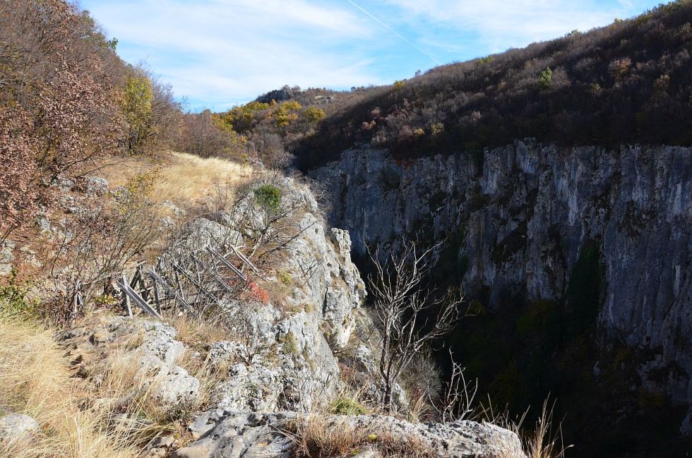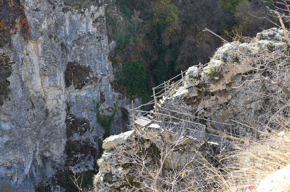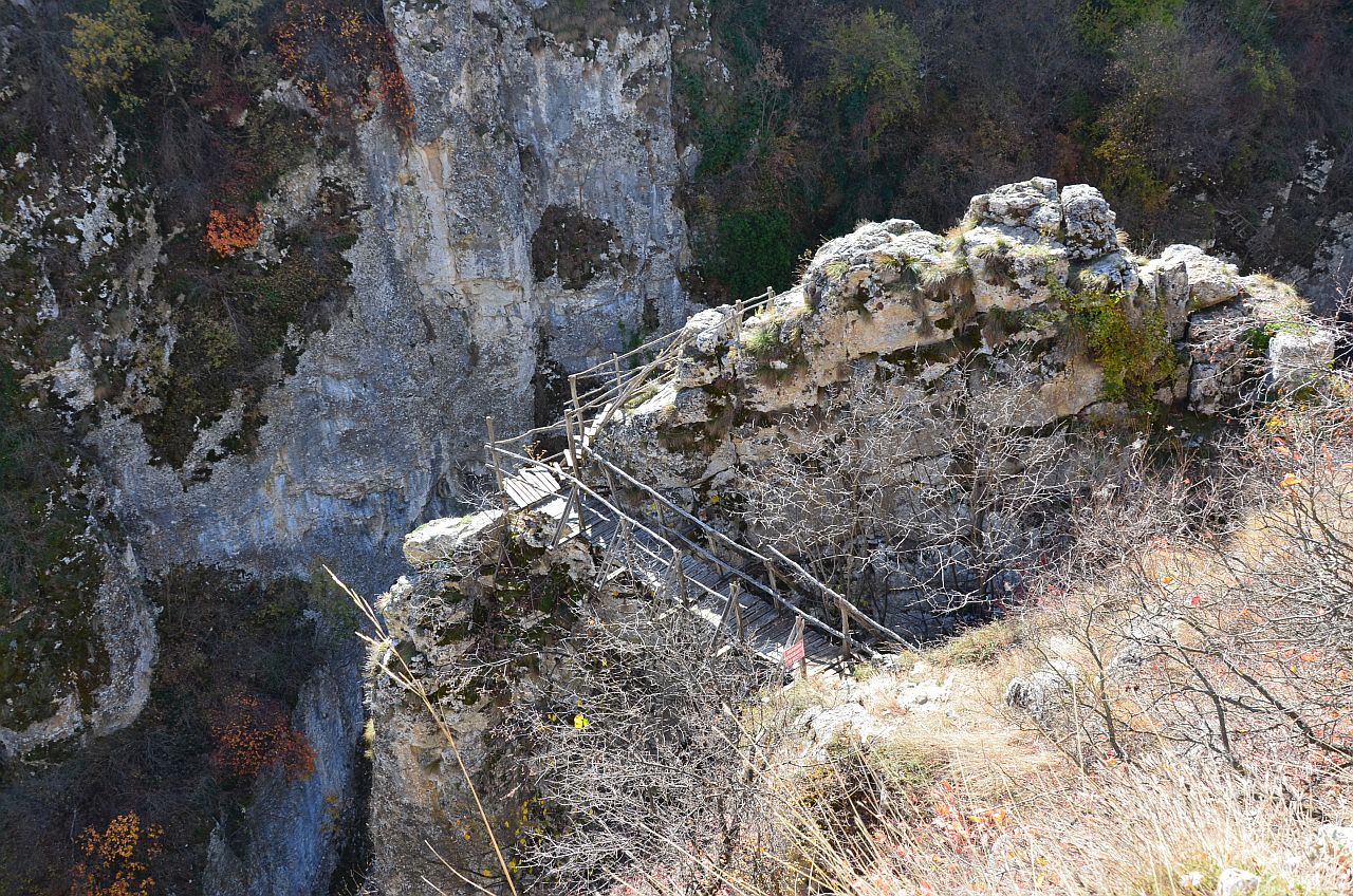 Până când am ajuns la vechea potecă amenajată pentru coborârea în canion, aproape de apă și de cascadă. Acum impracticabilă, periculoasă, cu accesul interzis.