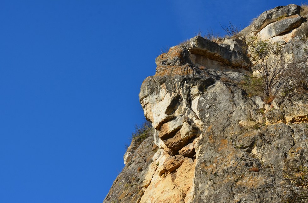 De jos, din parcare, am privit în sus iar o stâncă mi s-a părut că seamă cu capul unui titan. Un titan din piatră care străjuiește valea… Numai povești în capul meu. Mamei i s-a părut că e capul unui leu. Lui puștiulică îi semăna cu unul de taur… Fiecare cu propria imaginație…