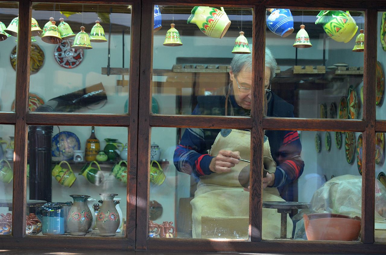 Și am mai fost impresionat de ceva acolo – atât în muzeul etnografic Etar, cât și în centrul orășelului Tryavna, am întâlnite o mulțime, chiar o mulțime, de prăvălii ale meșterilor populari și artizanilor, artiștilor tradiționali. În care aceștia lucrau dar și comercializau minunățiile născute din mâinile lor. Am privit de fiecare dată ca fermecat printre geamurile mari ale acestor prăvălii la cum lucrează oamenii aia, m-au fascinat.