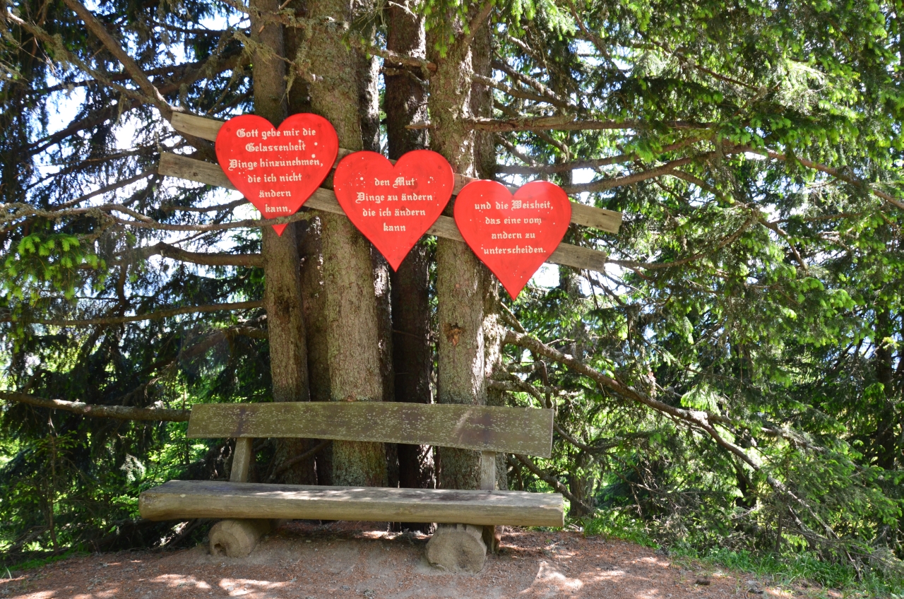 Cum am văzut indicatoarele către Capela Îndrăgostiților, Marienkapelle, ne-am zis că ar fi frumos să mergem într-o scurtă plimbare de două ore (dus-întors) până acolo. Timp de o săptămână avusesem parte numai de vreme noroasă, cu ploi multe și temperaturi chiar scăzute pentru final de iunie, așa că eram tare bucuroși de soarele care se arătase într-un final. Era o vreme tocmai potrivită pentru drumeții în familie.