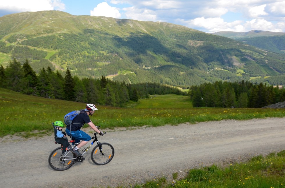 Așa că am luat-o la pas pe traseul forestier Herzel-Weg, unul cu o pantă destul de molcomă și pe care se poate merge foarte bine și cu bicicleta. Nu ne-am grăbit, pe vremea aia puștiulică avea o vârstă mai fragedă, așa că am făcut destule opriri pentru repaus.