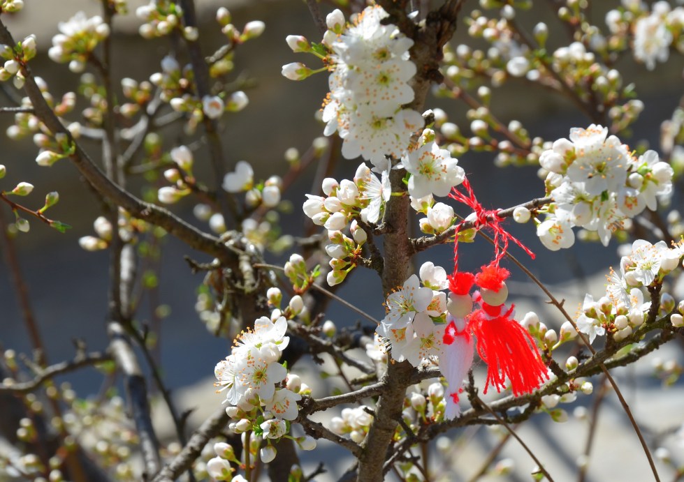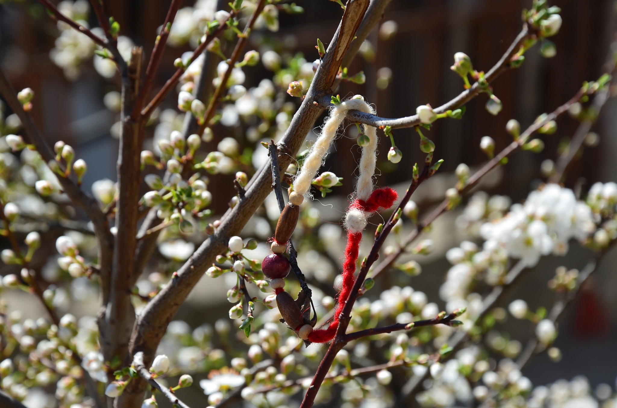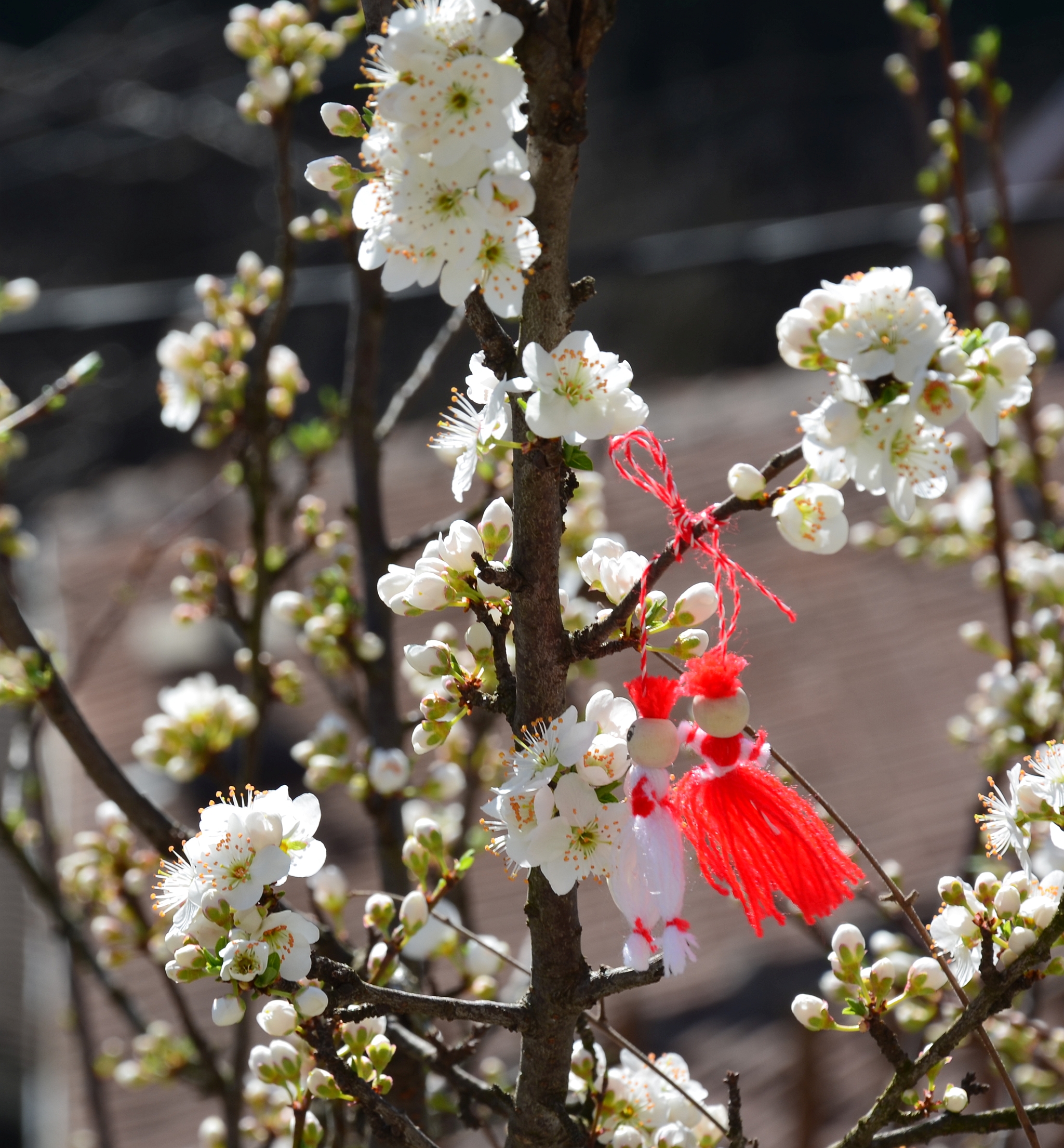 … iar într-un colțișor, ascunsă parcă, am găsit primăvara. Primul copăcel înflorit pe anul ăsta, cu mărțișoare prinse în crengi, cum este obiceiul la bulgari.