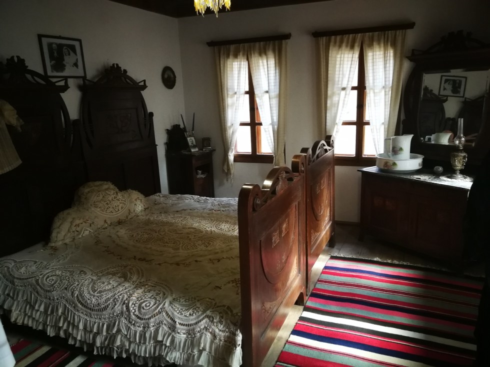 Apoi i-am invitat să vizităm casa albastră Sakov, o replică după casa din 1858 a negustorului Peter Saka, din Gabrovo. Și în care am avut voie să facem poze de această dată! Așa că acum pot să vă arăt cum arată la interior, pentru a vedea și voi cam cum arătau mobilierul și acareturile într-o casă de oameni înstăriți în acele vremuri.