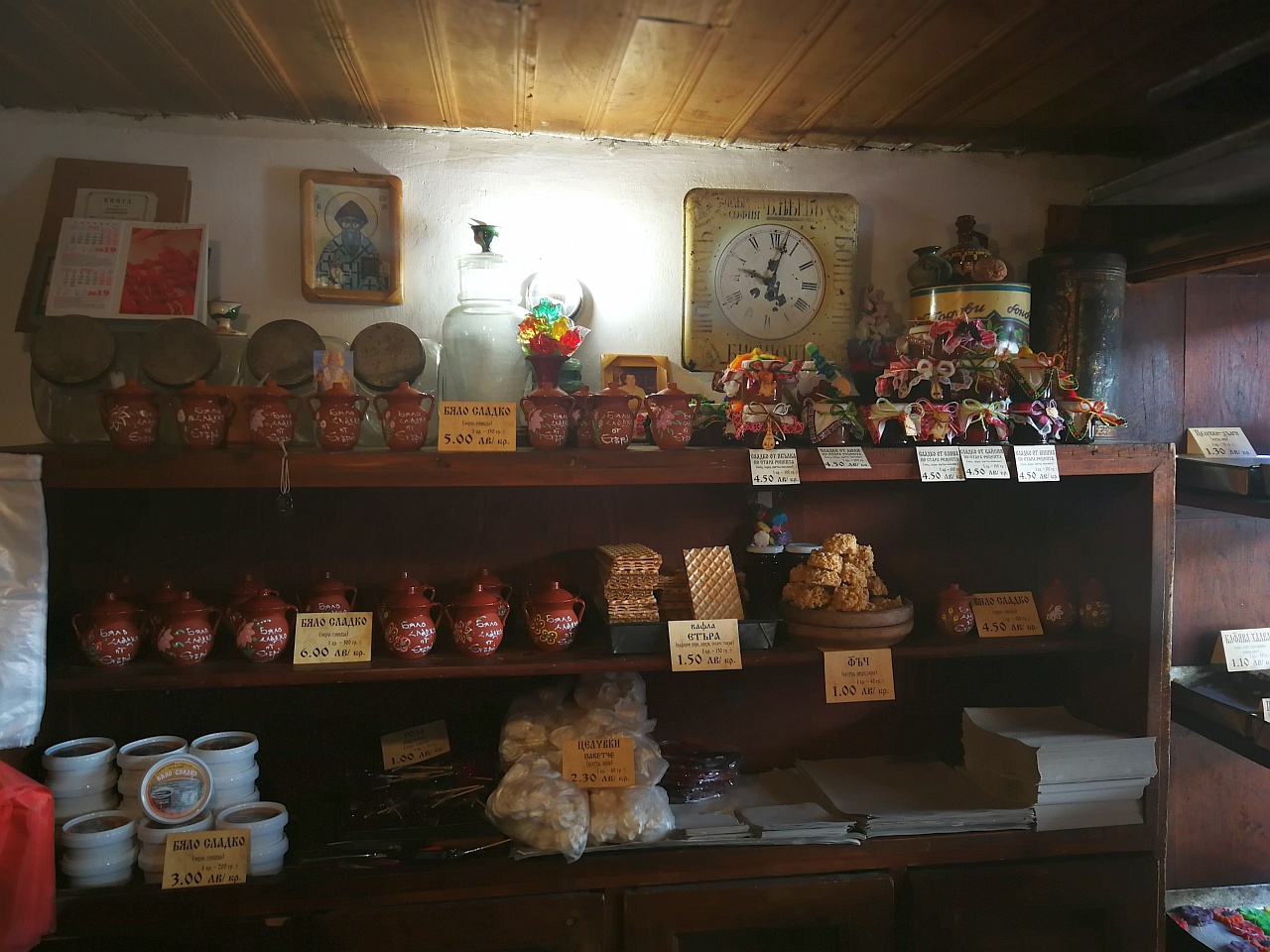 Apoi, ca un magnet, ne-a atras vitrina cofetăriei, cu tot felul de dulciuri care de care mai apetisante. Rahat rulat în tot felul de culori și cu tot felul de gusturi, halvale, dulcețuri, bezele, nuga, fursecuri… uff, tare greu pentru pofticioși.