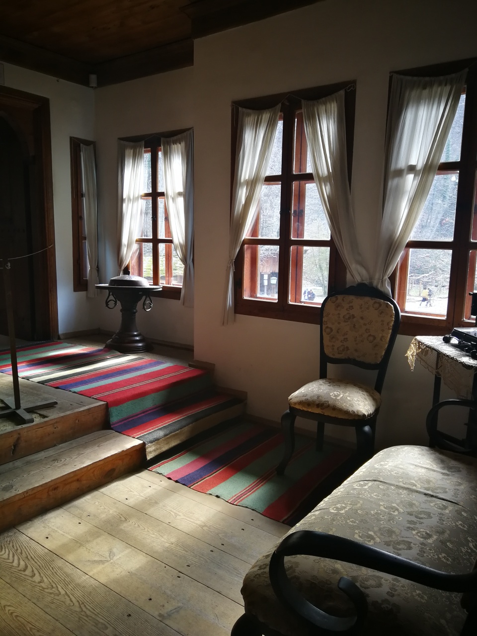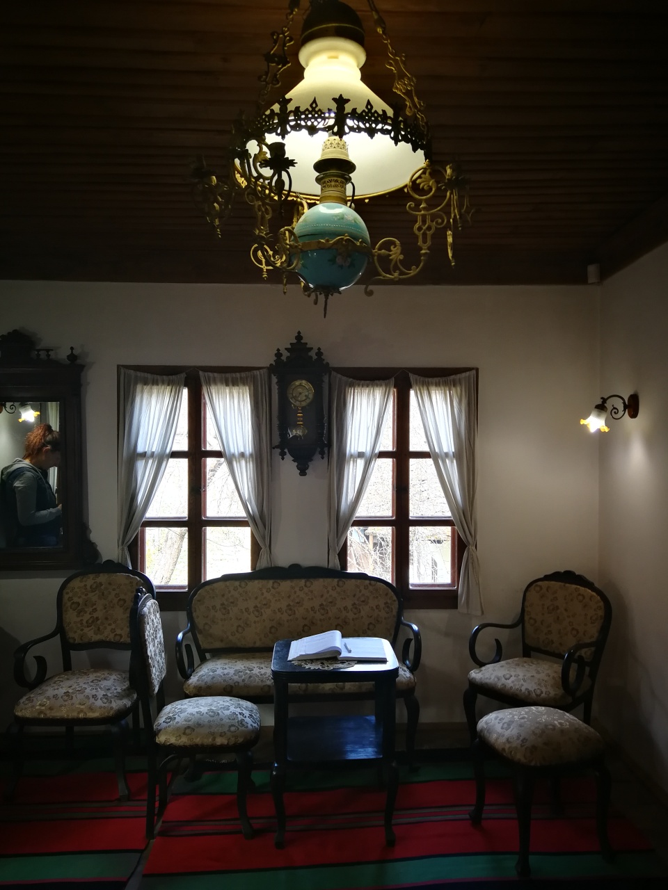 Apoi i-am invitat să vizităm casa albastră Sakov, o replică după casa din 1858 a negustorului Peter Saka, din Gabrovo. Și în care am avut voie să facem poze de această dată! Așa că acum pot să vă arăt cum arată la interior, pentru a vedea și voi cam cum arătau mobilierul și acareturile într-o casă de oameni înstăriți în acele vremuri.