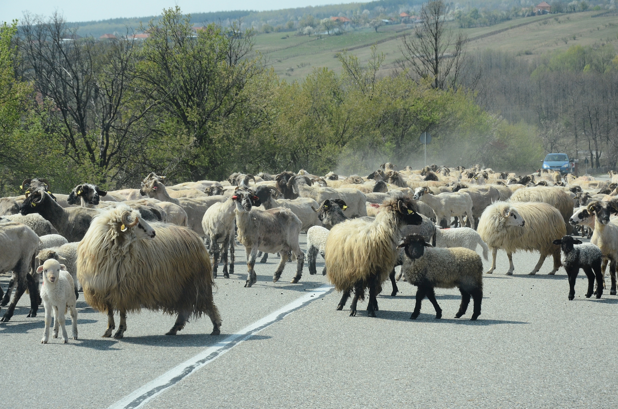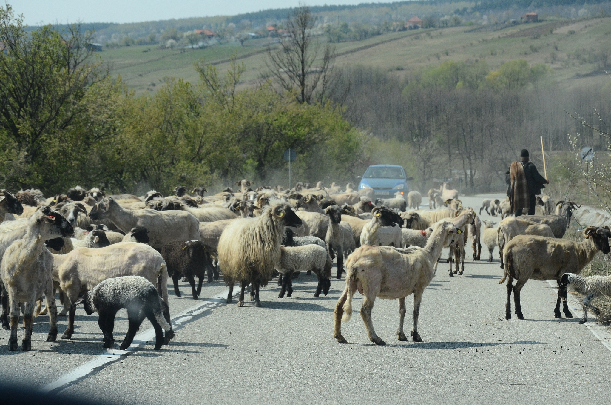 Pe drum, ne-a tăiat calea o turmă de oi… Nu ne grăbeam, așa că am privit la mioare și la miei…
