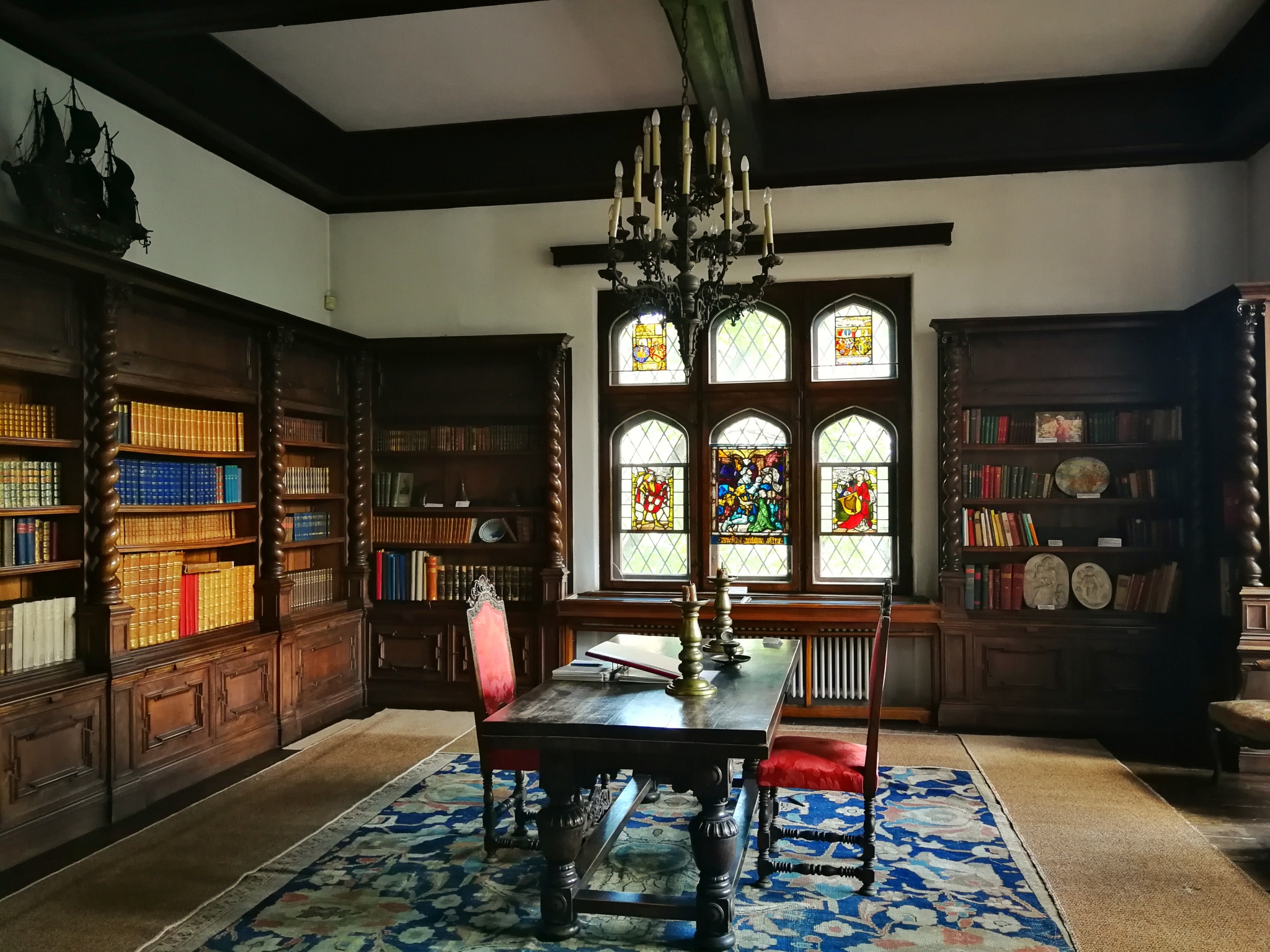 …unde am văzut biblioteca din lemn masiv, ce adăpostea cândva peste 2000 de volume, dintre care unele rare…