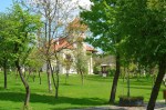Am ieșit apoi pe domeniul conacului, plin de pomi și de copaci, așezați pe o pajiște de un verde crud. Ne-am plimbat pe aleile parcului, am aflat informații despre parcurile pierdute sau spitalele care nu mai sunt…