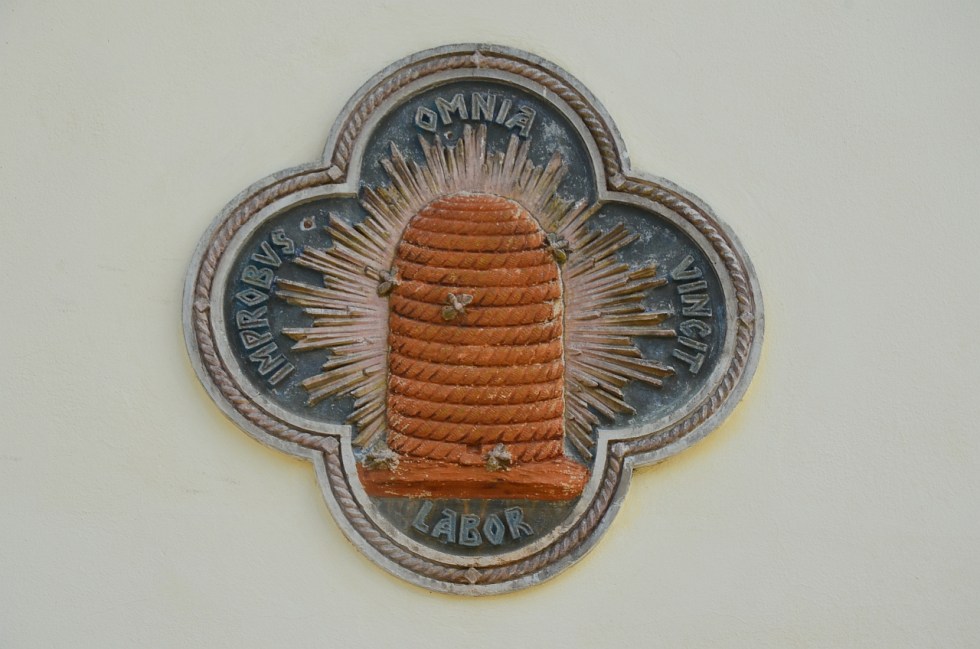 „Munca perseverentă învinge totul” scria pe zidul de la intrare, în jurul unui stup de albine. Se mai poate traduce „Munca tenace invinge orice dificultate”, în orice caz, ați cam înțeles mesajul. Numai prin perseverență și muncă vei reuși în viață!