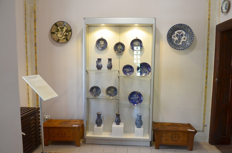După ce am admirat costumele populare, am urcat pe scări. Și în prima încăpere am văzut o vitrină cu ceramică de la Saschiz, unele obiecte chiar și din secolul XVIII.