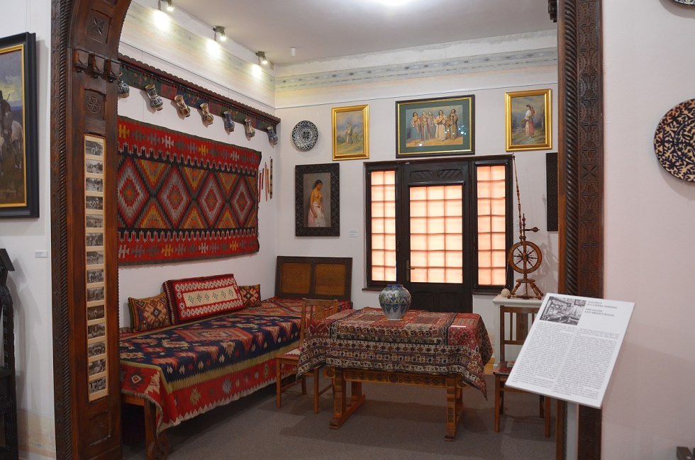 Blide, linguri din lemn, ploști, carafe, clești de salată, ouă încondeiate… Mai că nu lipseau bucatele aburinde și bărdacele pline cu vin din acel peisaj… Și după o masă copioasă parcă mergea un somnic acolo pe divan…