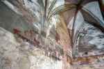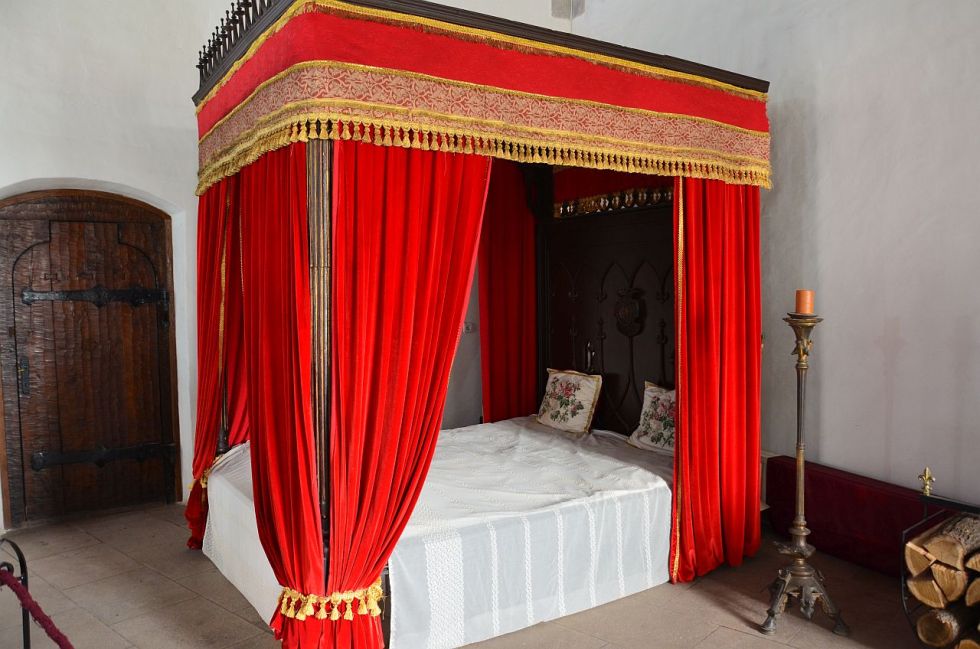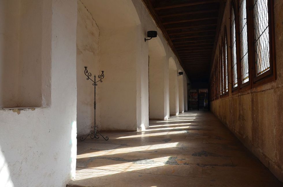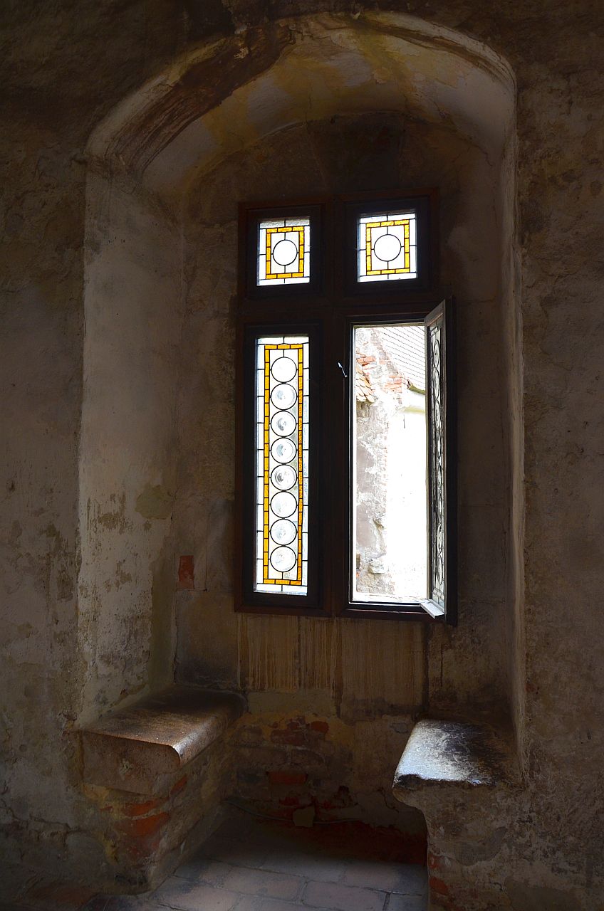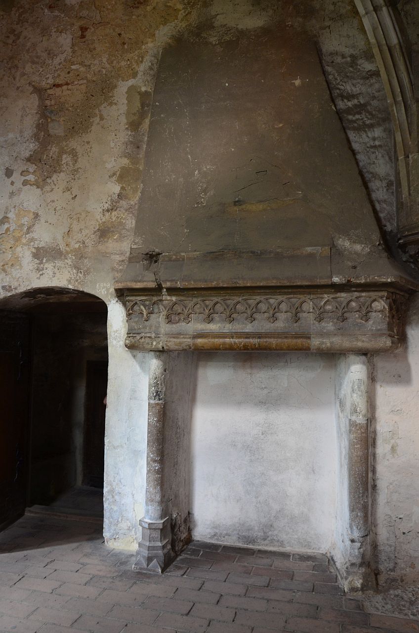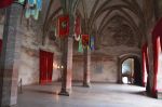 … unde ne-am uitat cu atenție mai ales la elementele decorative ale pardoselei, la stemele stăpânilor castelului, sau la cele de pe tavan și de pe coloanele octogonale de susținere. Avea rolul unei săli de mese la evenimente deosebite sau ale unei săli de judecată.
