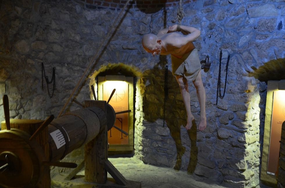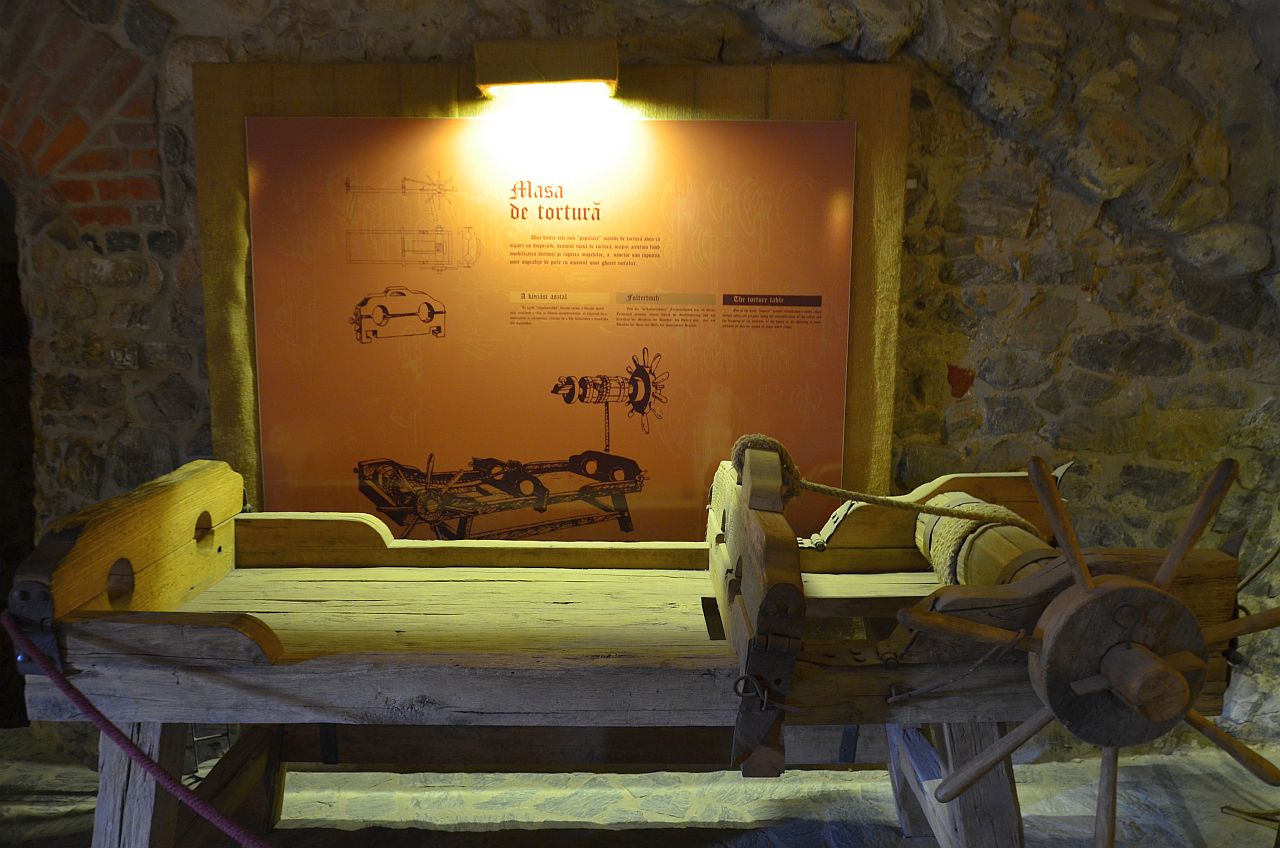Pentru ca din curtea interioară să coborâm la baza unui turn unde erau prezentate metodele de tortură ale acelor vremuri medievale.