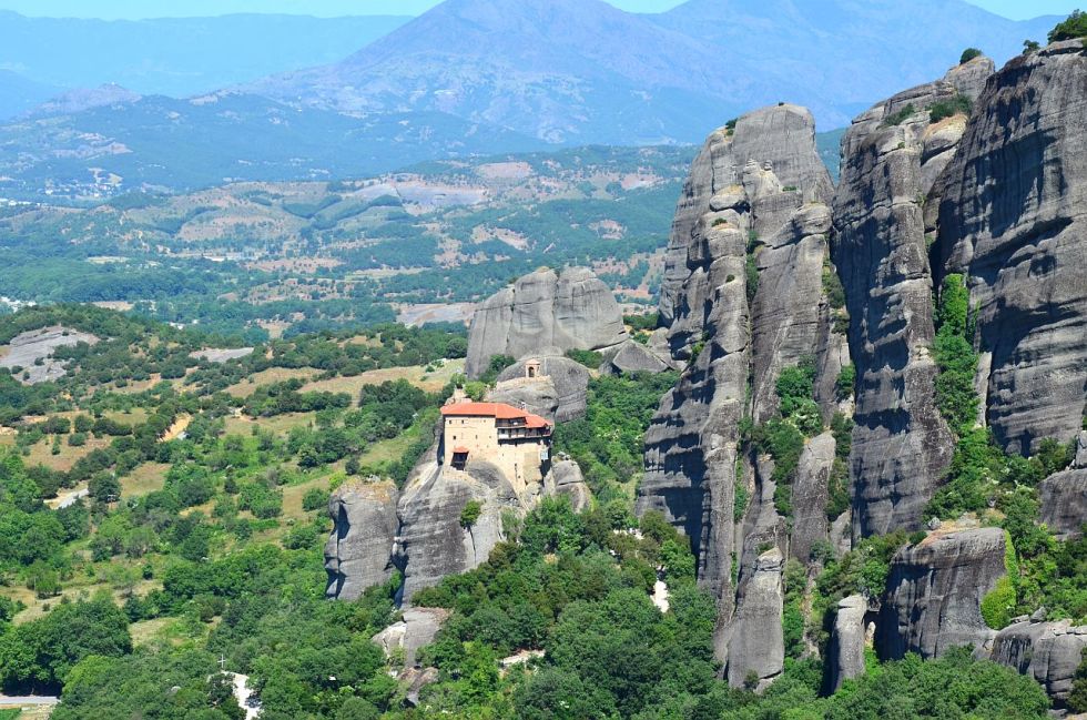 Frumoase priveliști asupra satului Kastraki, câmpiei Thesaliei dar și mănăstirilor Marele Meteoron, Rousanou și Sf. Stefan… de acolo, de la Mănăstirea Varlaam.