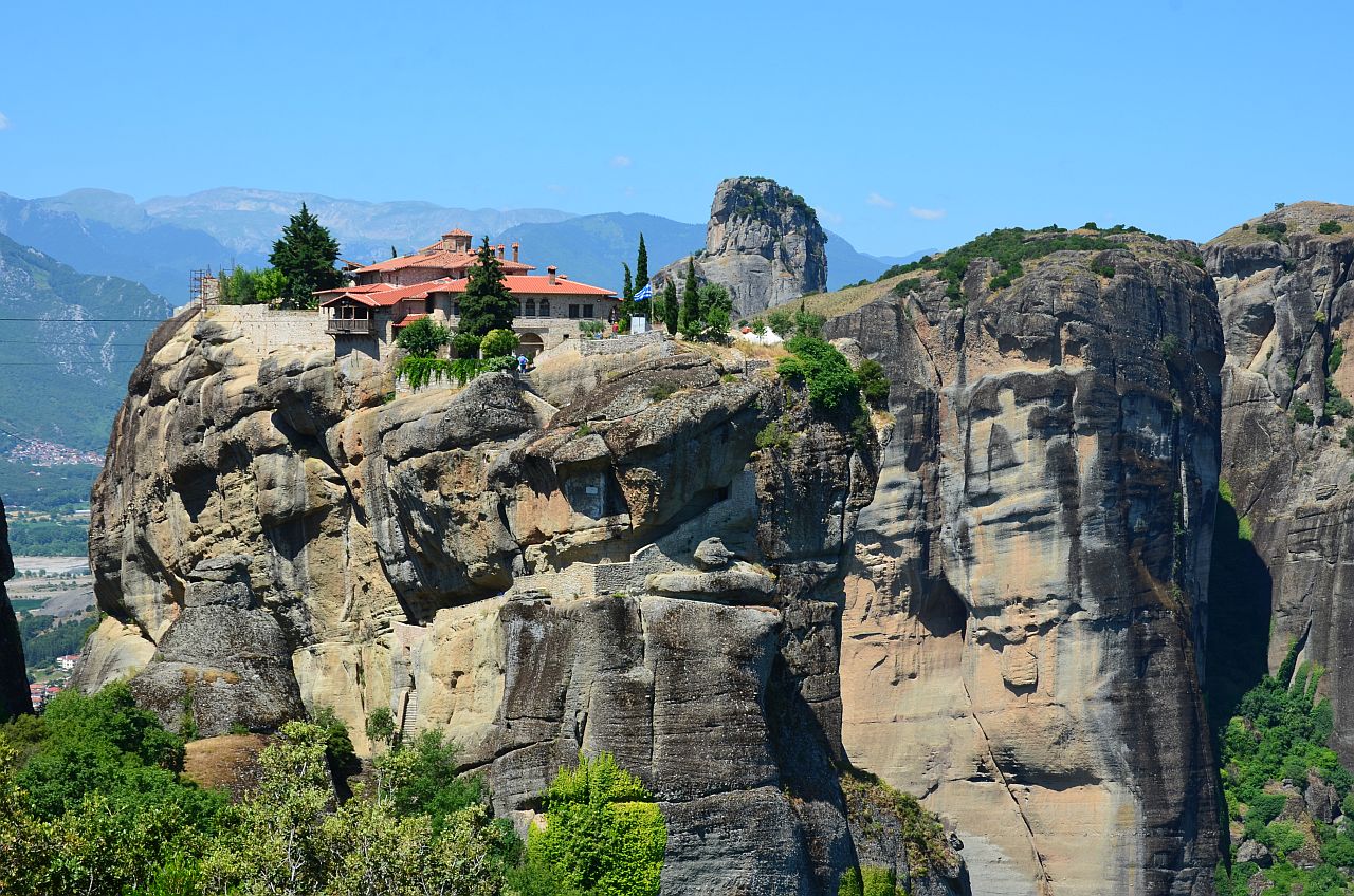 Prima dintre toate, pe cea mai înaltă stâncă, Mănăstirea Marele Meteoron a fost construită la o înălțime de 613m, în secolul XIV, sub îndrumarea monahului Atanasie, venit atunci de la Muntele Athos.
