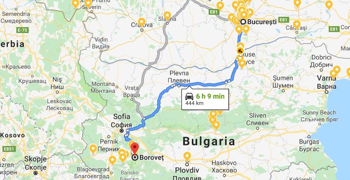 De la București am făcut aproximativ 6 ore până la Borovets, cu 30 de minute petrecute în vama Giurgiu. Unde la 6 dimineața erau destule mașini care treceau în Bulgaria, pesemne turiști care petreceau vacanța de Rusalii la vecinii noștri.