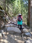 La drum… Mai întâi prin pădure, apoi prin jnepeniș… pe o cărare destul de lină, tot cu bolovani dar nu foarte abruptă, timp de vreo oră.