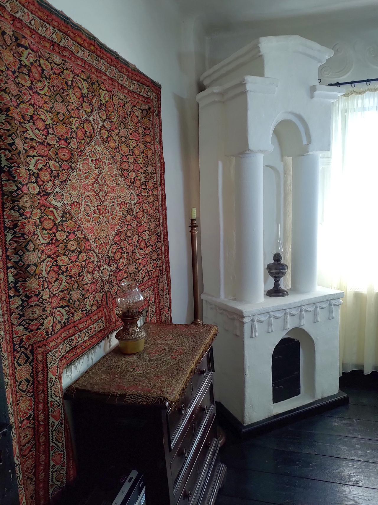 … unde am văzut alte frumoase icoane, una mică decorată în sidef, obiecte de mobilier din acei ani, ba chiar și un instrument de încălzit patul în nopțile friguroase (da, acea tigaie cu capac în care se punea jar, la fel cum am văzut că se întâmpla și pe la curțile regilor vestici). A se observa și soba cu olane, specifică în special Olteniei…