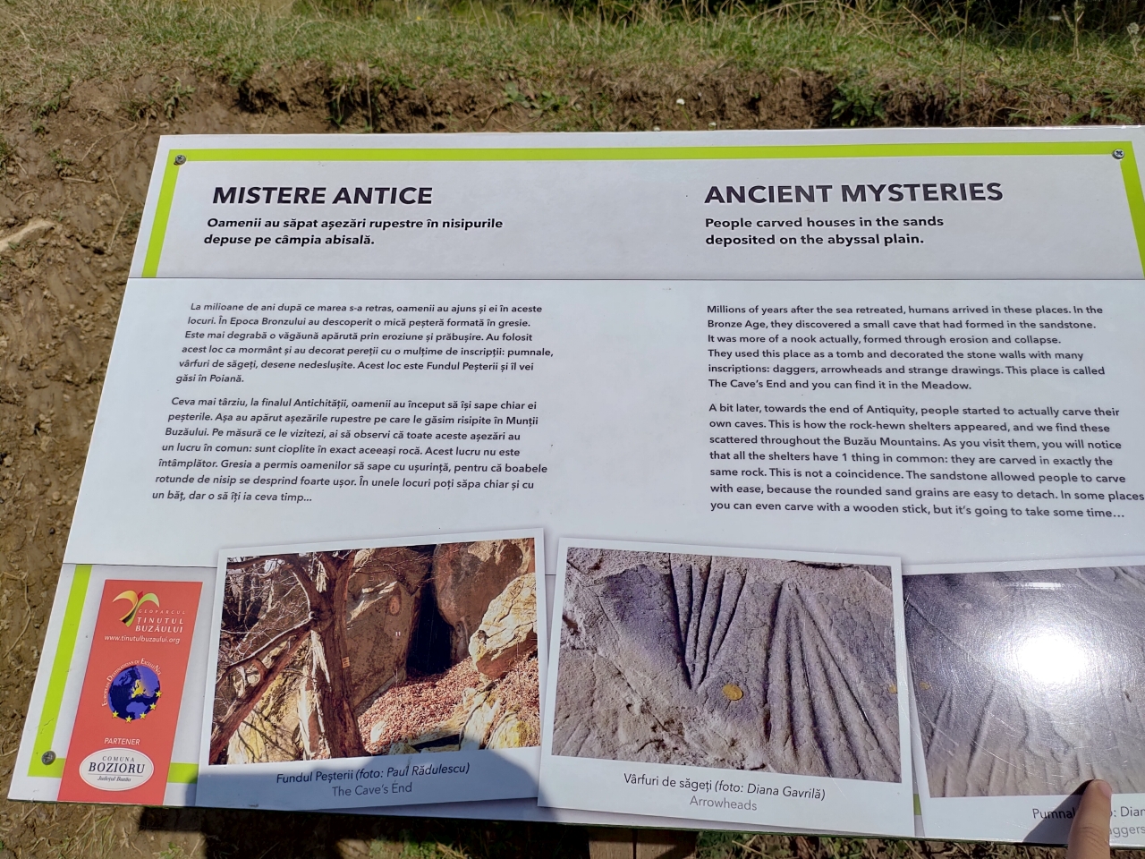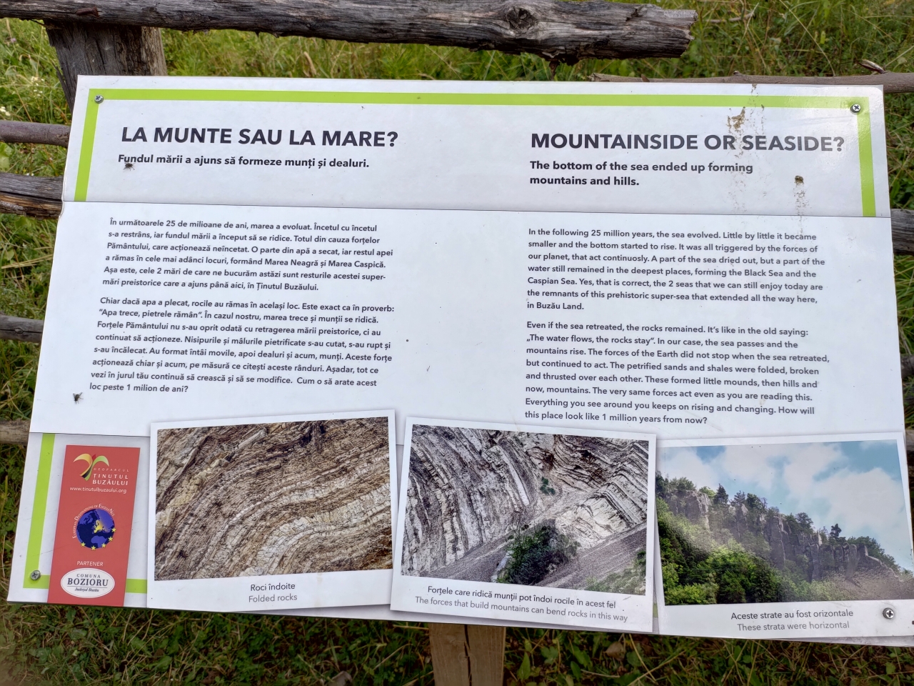 Pe drum am întâlnit câteva panouri informative din care am aflat că în urmă cu 13 milioane de ani aceste ținuturi erau acoperite complet cu apă. În acest ținut sunt o mulțime de roci nisipoase care s-au pietrificat de-a lungul milioanelor de ani formând gresiile actuale. Nisipurile din ținutul Buzăului sunt în marea lor majoritate boabe de cuarț.