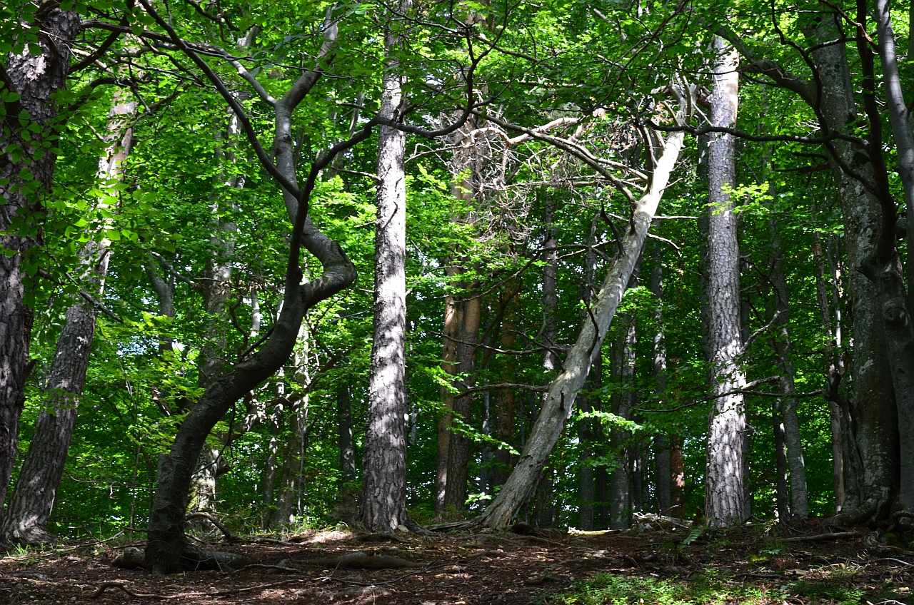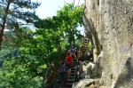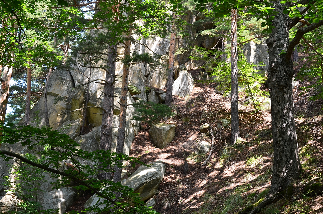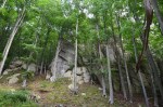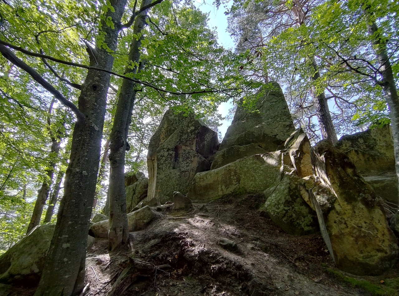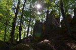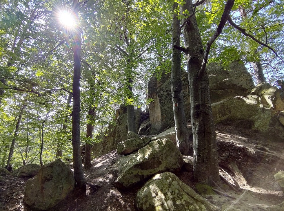 … stânci de gresie cu forme rotunde sau prea regulate țâșneau în jurul nostru din mijlocul codrilor deși… Frumoase peisaje…