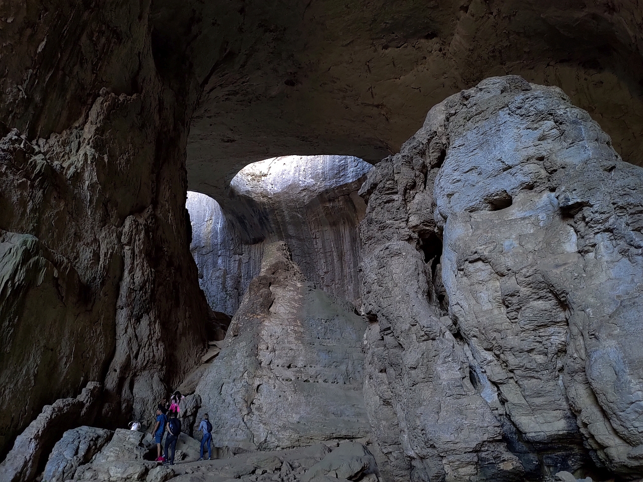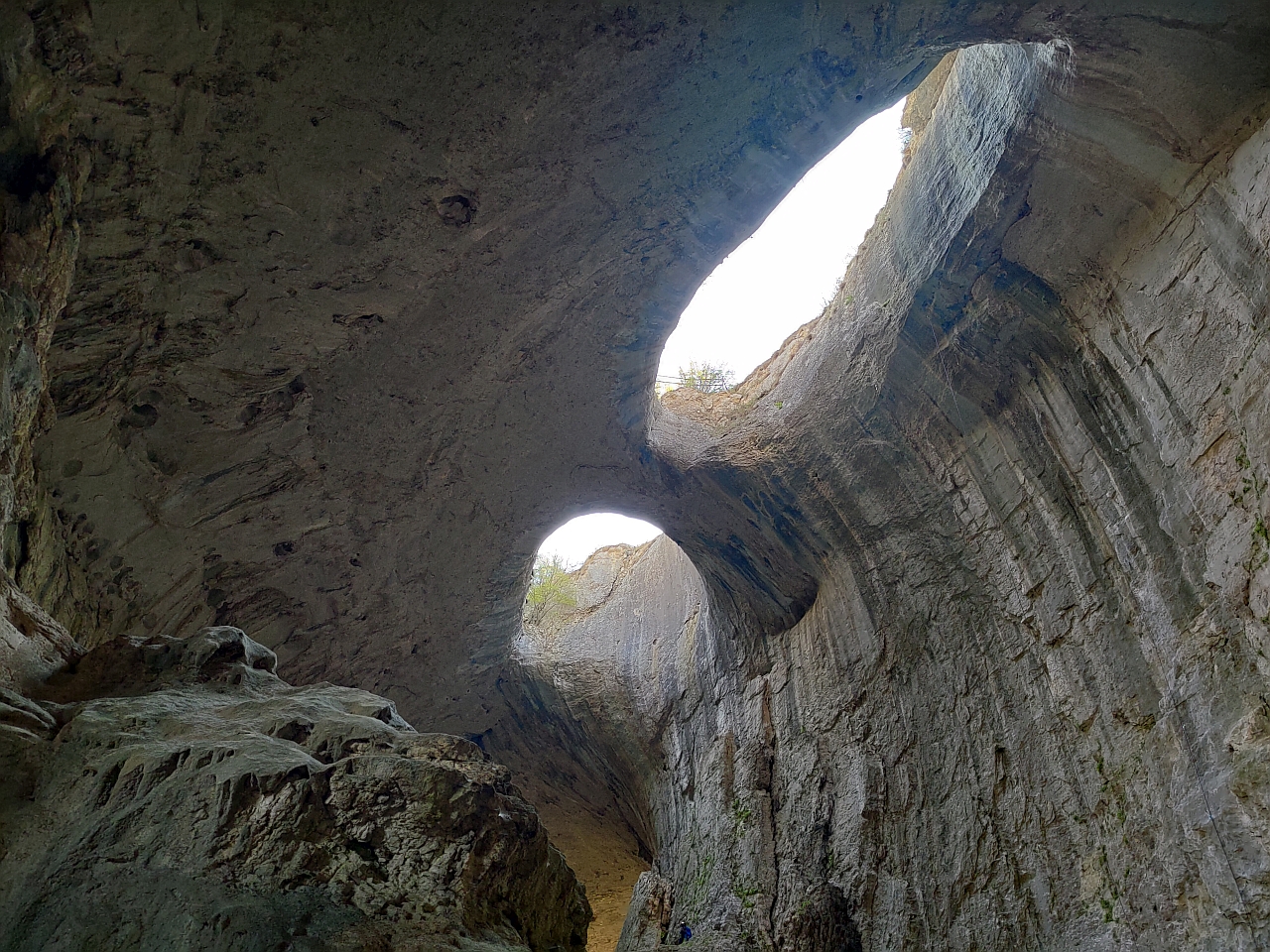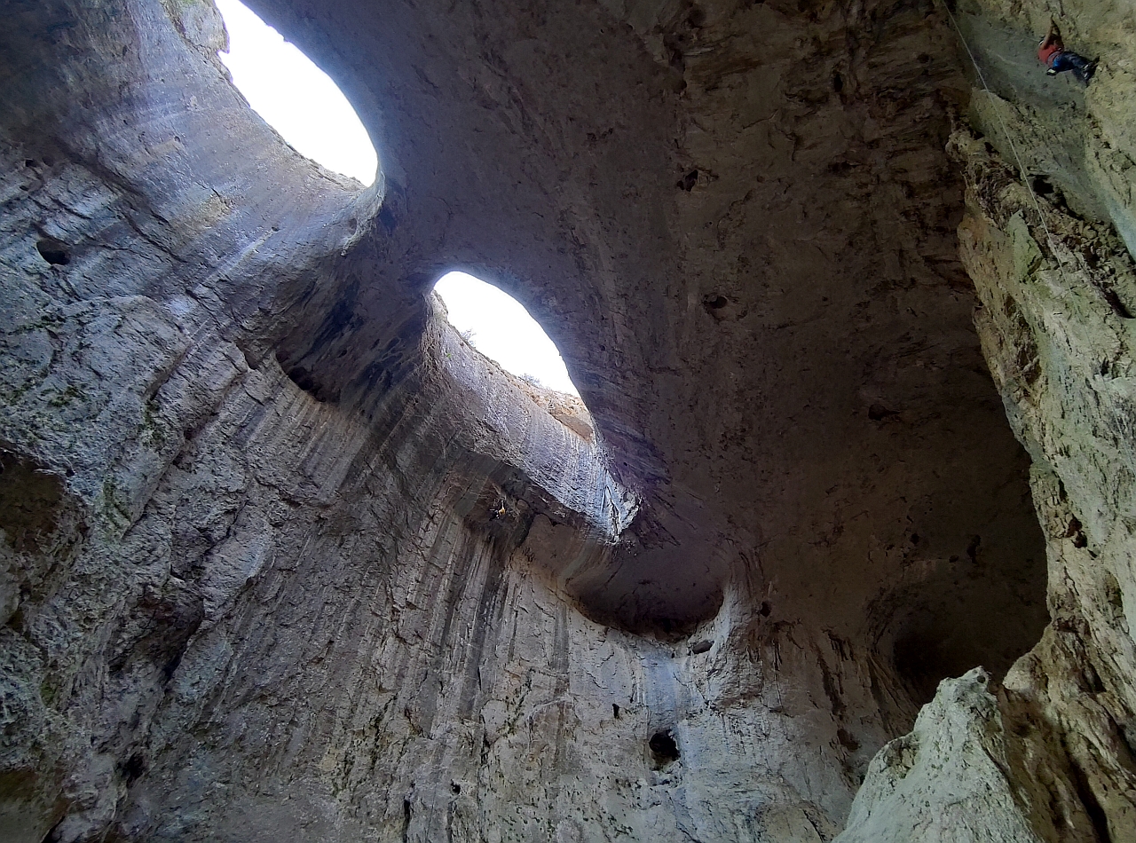 Două spărturi în formă de ochi din tavanul peșterii care te fac să simți că ești sub privirea Creatorului… Practic, m-au luat fiorii când priveam în sus, m-a furnicat pe spate… Parcă ești la Judecată, te simți mic și neînsemnat în fața creației Mamei Natură…