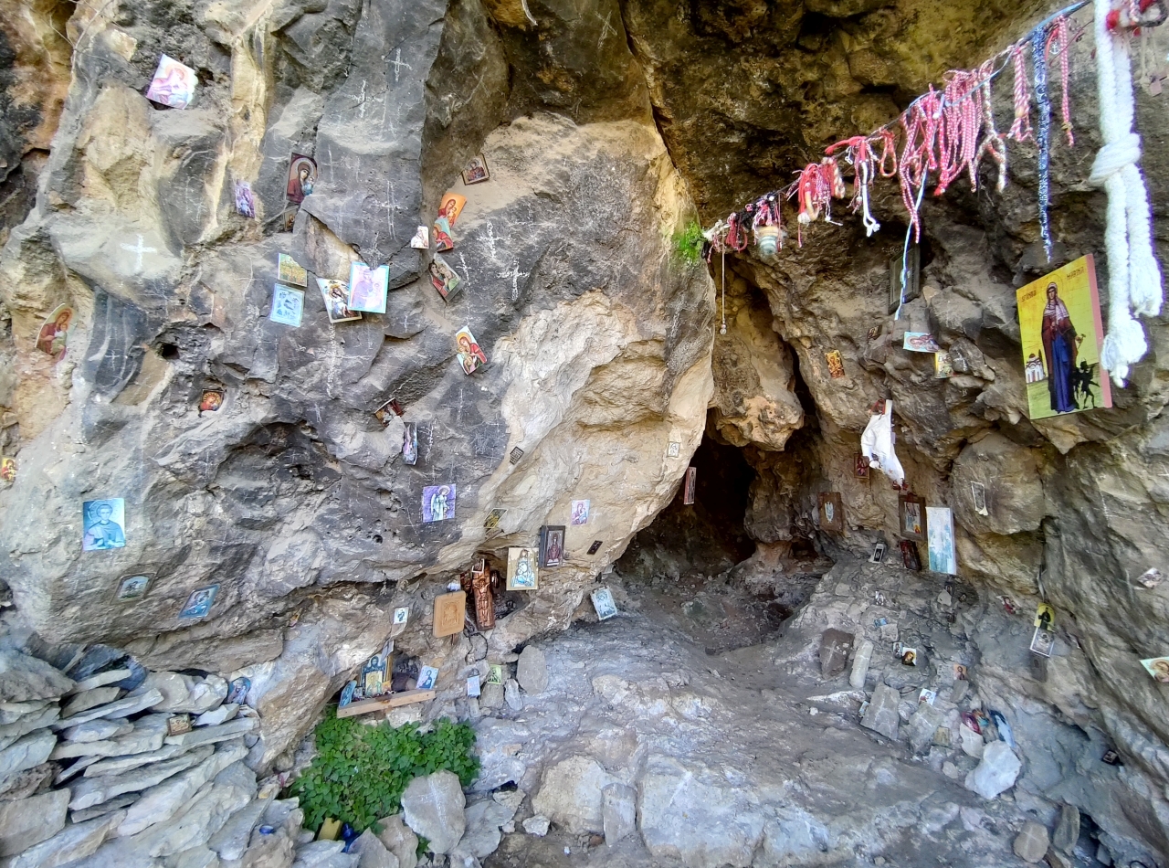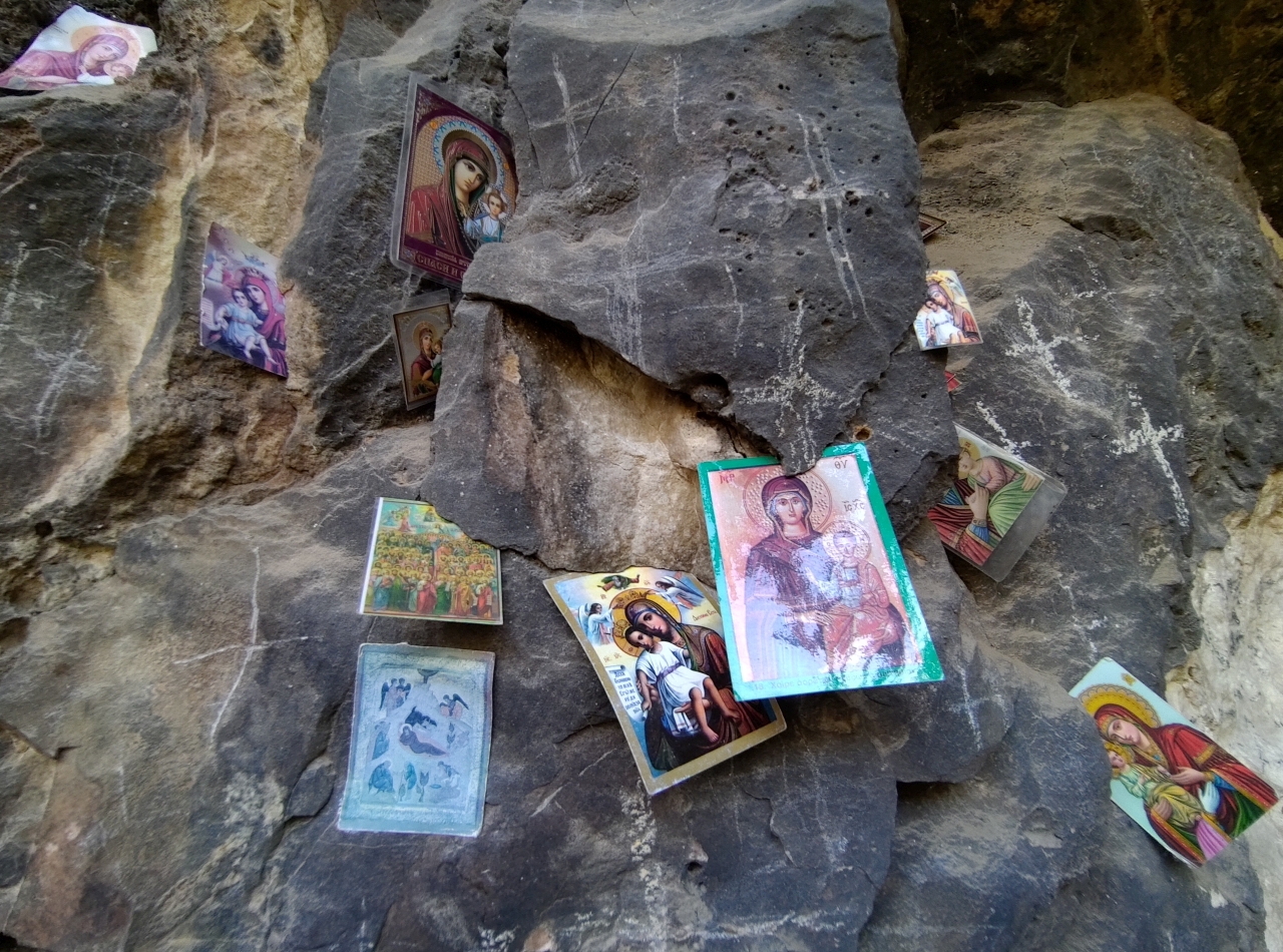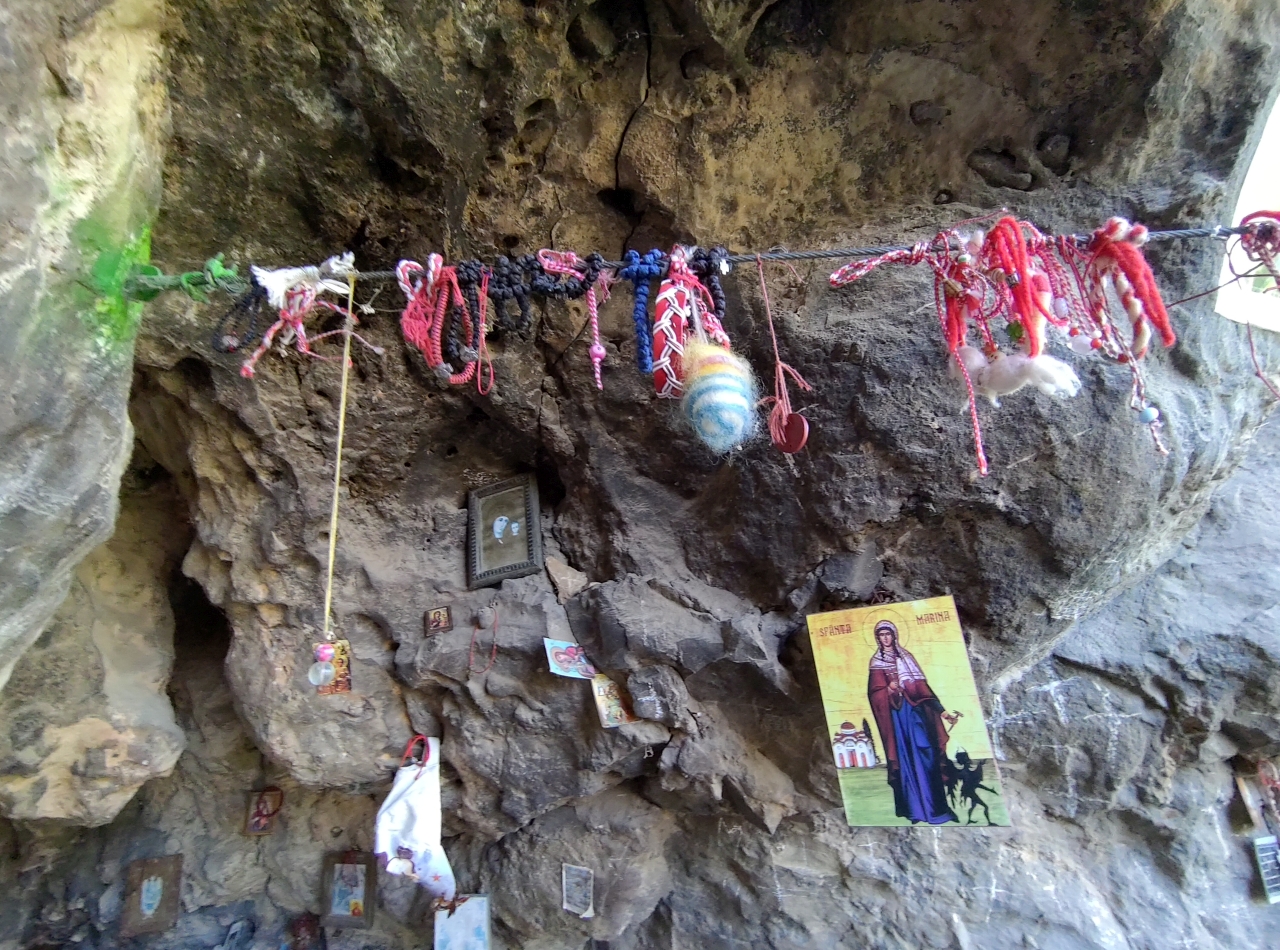 După cele 20 de minute am ajuns la un micuț altar într-o cornișă din stâncă, un loc unde o mulțime de turiști au lăsat urmele dorințelor și rugilor lor… Mărțișoare, iconițe, obiecte vestimentare…
