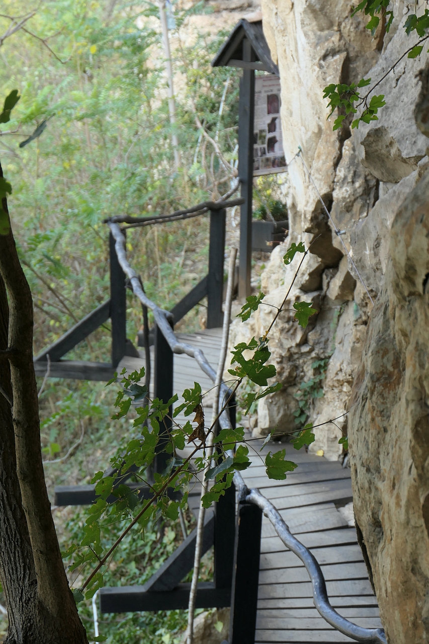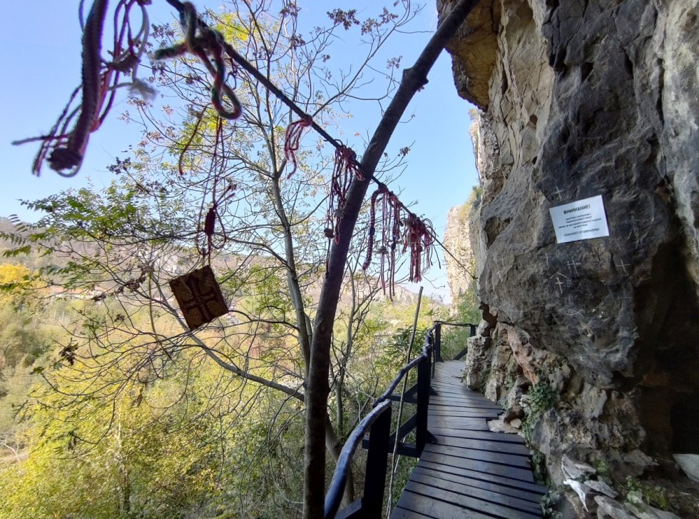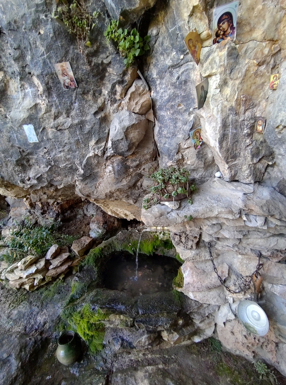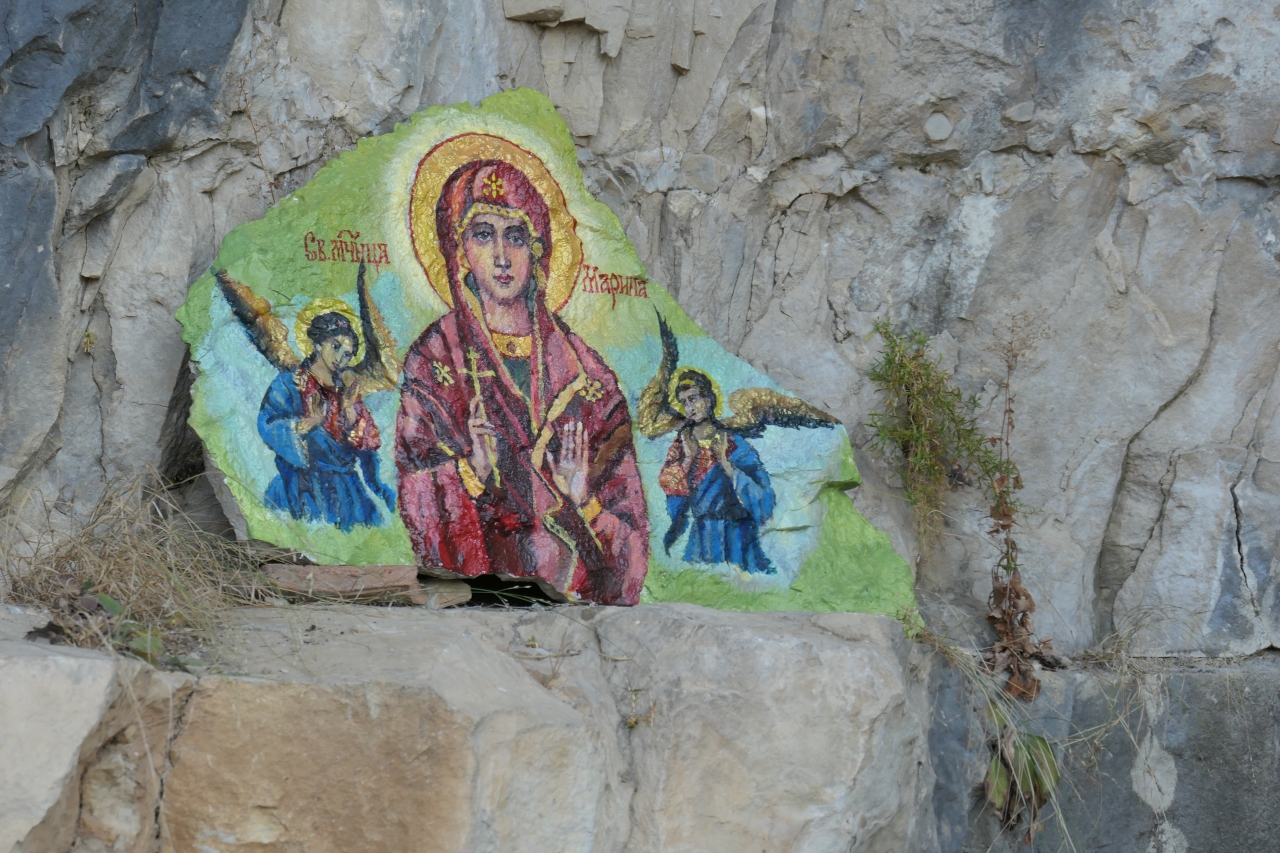 După cele 20 de minute am ajuns la un micuț altar într-o cornișă din stâncă, un loc unde o mulțime de turiști au lăsat urmele dorințelor și rugilor lor… Mărțișoare, iconițe, obiecte vestimentare…