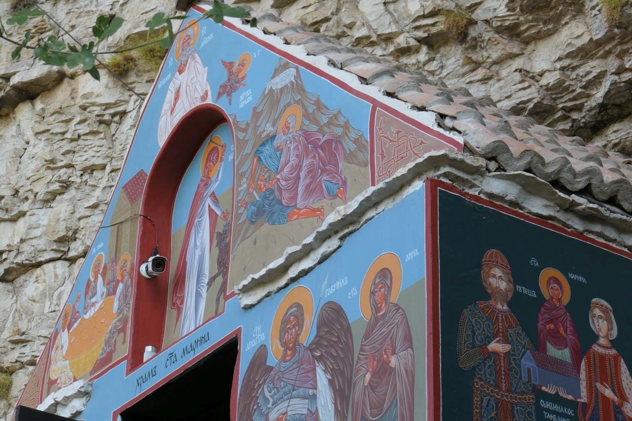 Și cum stăteam eu așa și mă gândeam că ar trebui să ne întoarcem, să ne facem loc cumva prin furnicarul turistic, văd un indicator – Mănăstirea Sf. Marina, una rupestră mă gândeam eu… Și se pare că aveam dreptate.