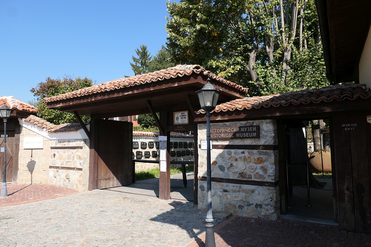 Așa că, odată ajunși acolo, ne-am înființat în parcarea de lângă Muzeul de Istorie din Panagyriste, am plătit biletele de intrare (7 leva de persoană, plus 2 Leva taxă foto). Atenție, costul este atât pentru Muzeul de Istorie, dar și pentru tezaur și casele memoriale – Dudekov, Tutev, Lekov și Raina.