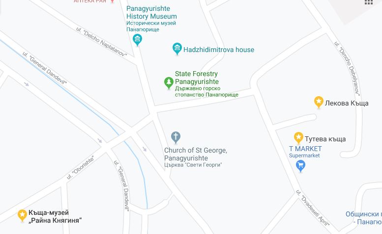 Din Staro Jelezare, din acel frumos muzeu de artă stradală în aer liber, în drum către Koprivshtitsa ne-am oprit vreme de vreo două ore și în Panagyurishte, un orășel situat într-o mică vale a munților Shredna Gora, la 540 metri deasupra nivelului mării.